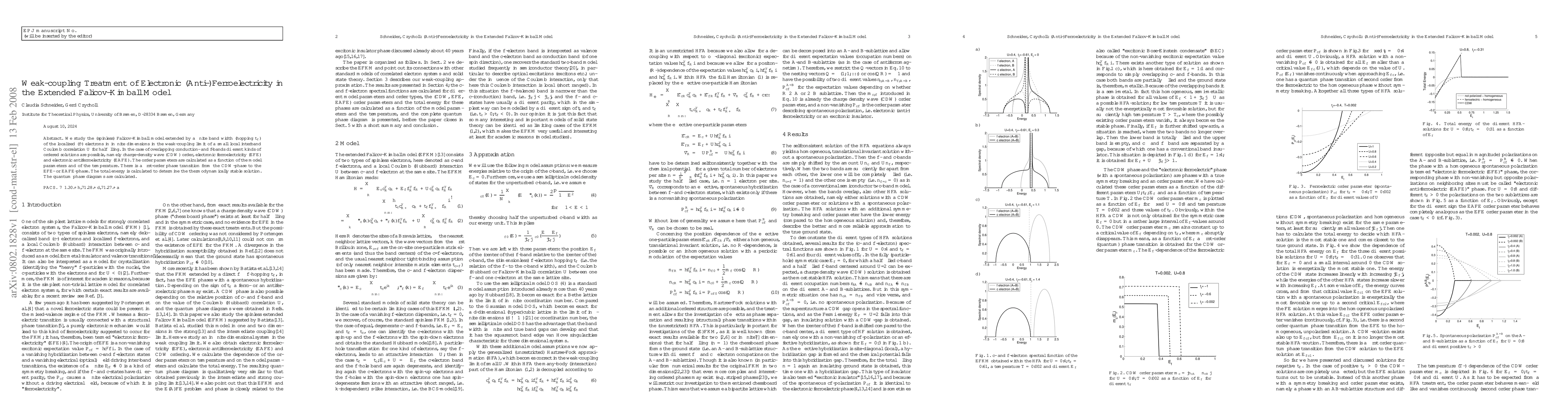 This paper investigates the weak-coupling behavior of the extended Falicov-Kimball model in infinite dimensions, focusing on electronic (anti-)ferroelectricity. It identifies charge-density wave, electronic ferroelectricity, and electronic antiferroelectricity as possible ordered states, with a first-order phase transition between them, and determines the thermodynamically stable solution through total energy calculations.