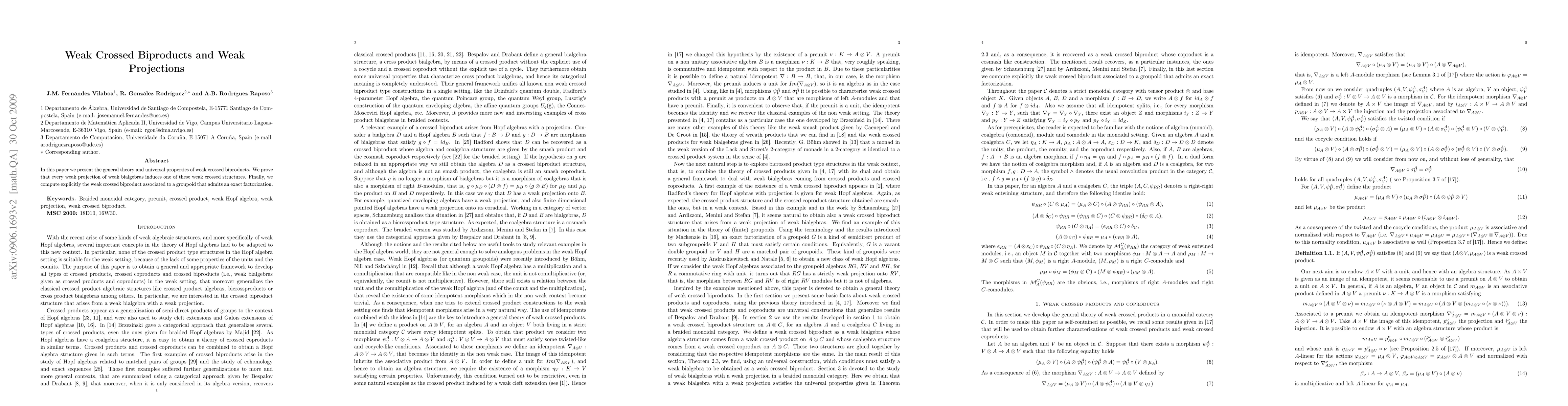 We present the universal theory of weak crossed biproducts, and we prove that every weak projection of weak bialgebras induces an example of this crossed structure. As an example, we give the construction of a weak projection of a weak bialgebra associated to a groupoid that admits an exact factorization.