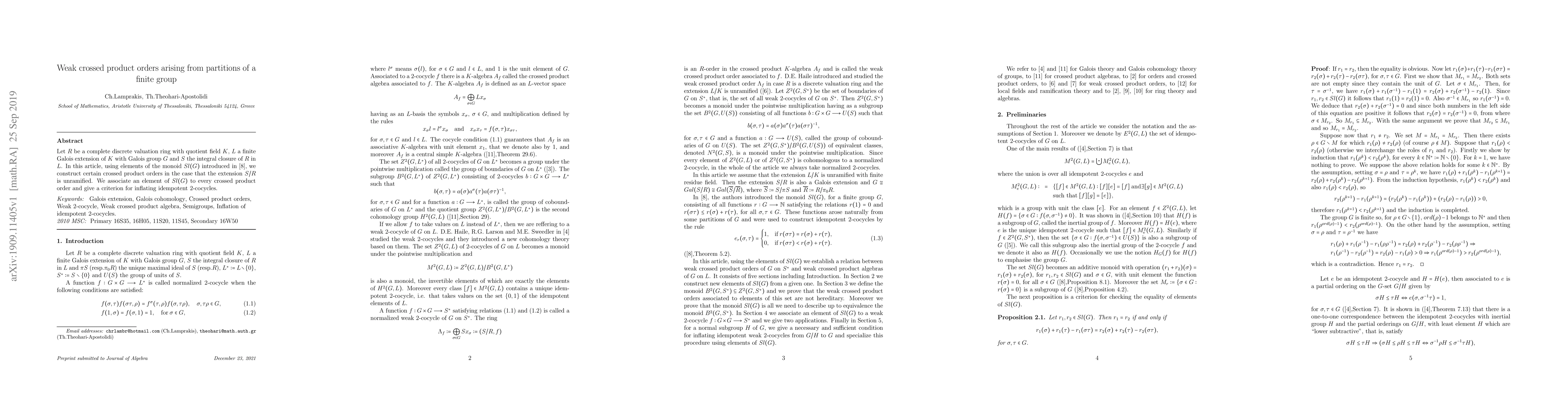 This paper constructs crossed product orders arising from partitions of a finite Galois group G in unramified extensions S/R, utilizing elements from the monoid Sl(G). It provides a criterion for inflating idempotent 2-cocycles and links these orders with specific semilinear maps.