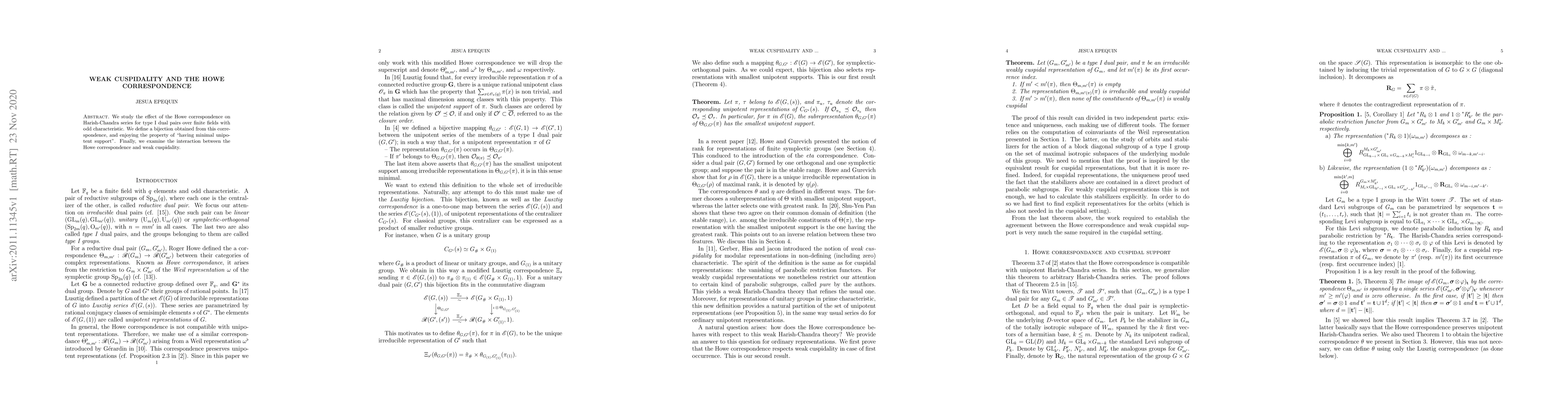 This paper explores the impact of the Howe correspondence on Harish-Chandra series for type I dual pairs over finite fields of odd characteristic, defining a bijection with minimal unipotent support and investigating its relationship with weak cuspidality.