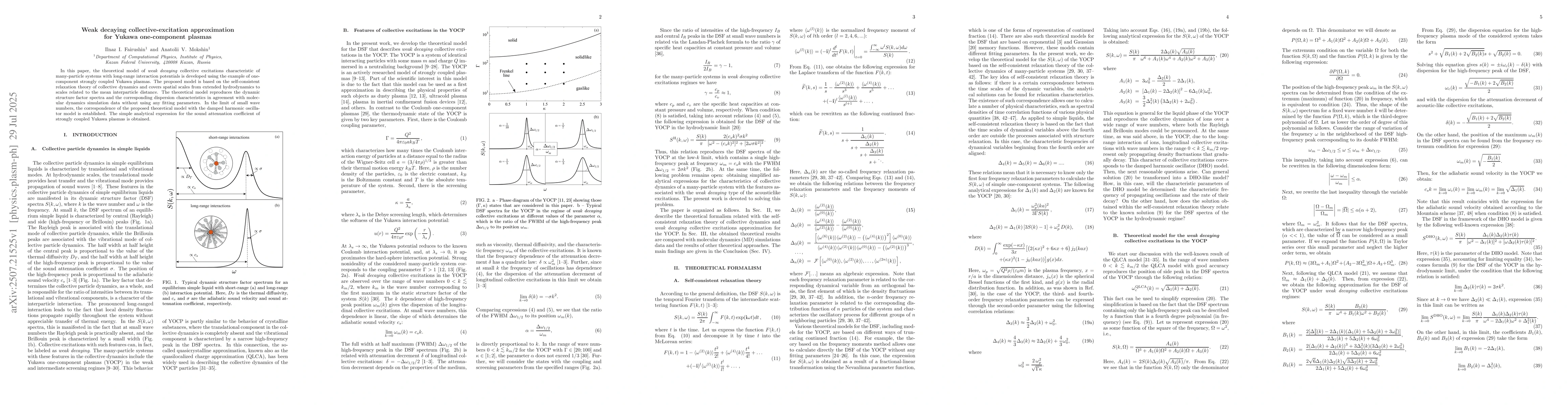 The development of a theoretical model based on self-consistent relaxation theory for weak decaying collective excitations in Yukawa one-component plasmas, providing a simple analytical expression for sound attenuation coefficient.
