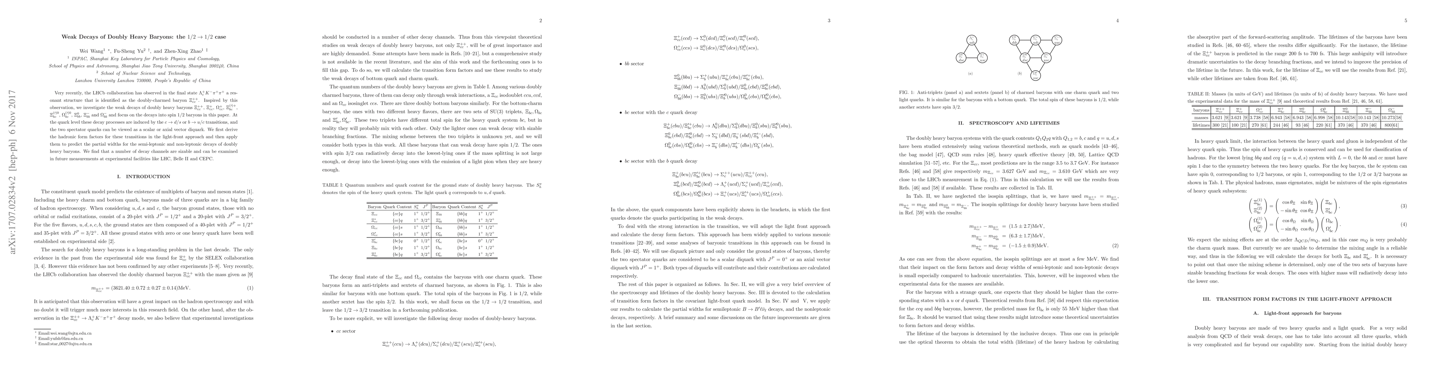 This paper investigates the weak decays of various doubly heavy baryons, focusing on transitions from $1/2$ to $1/2$ spin states. Using the light-front approach, the authors derive hadronic form factors and predict significant partial widths for semi-leptonic and non-leptonic decay channels, suggesting several promising decay processes for future experimental verification at LHC, Belle II, and CEPC.