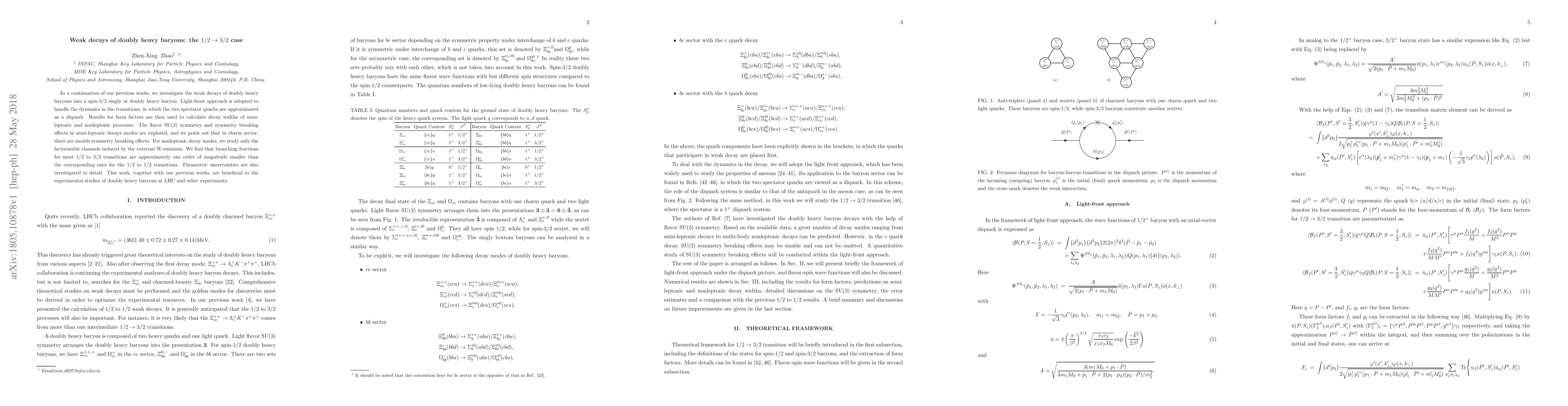 This paper investigates the weak decays of doubly heavy baryons transitioning from spin-1/2 to spin-3/2 states using a light-front approach, finding branching fractions for the former are about an order of magnitude smaller than for 1/2 to 1/2 transitions, with significant symmetry breaking effects noted in the charm sector.