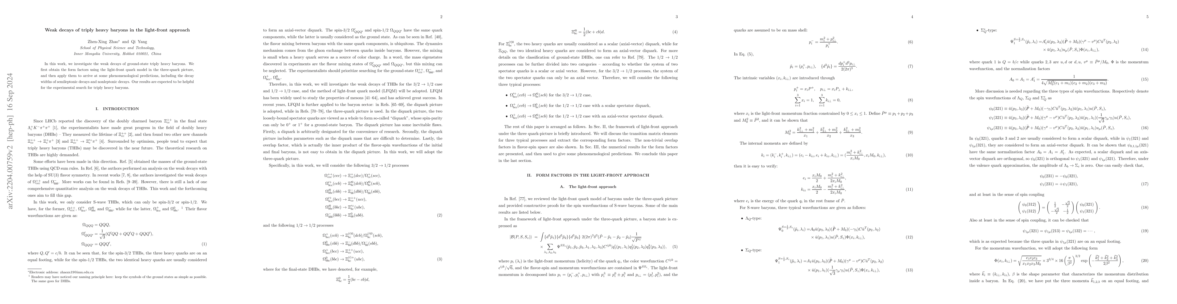 This paper explores the weak decay processes of spin-3/2 triply heavy baryons to spin-1/2 baryons using the light-front quark model. The study aims to provide form factors for these decays, which could aid experimental searches for triply heavy baryons.