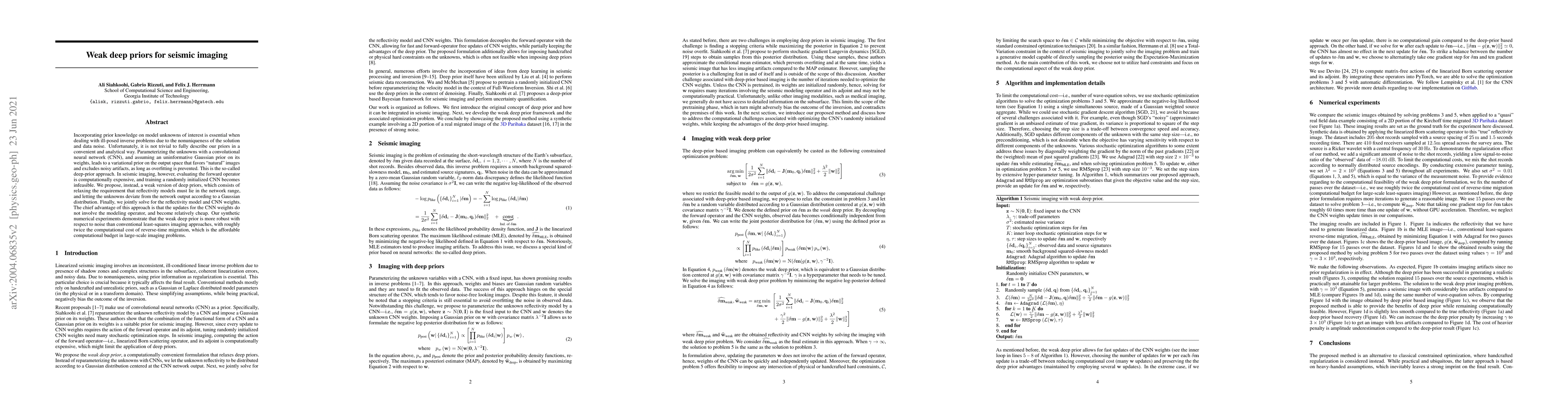 Researchers propose a weak version of deep priors for seismic imaging that allows for more robust noise tolerance with reduced computational cost.