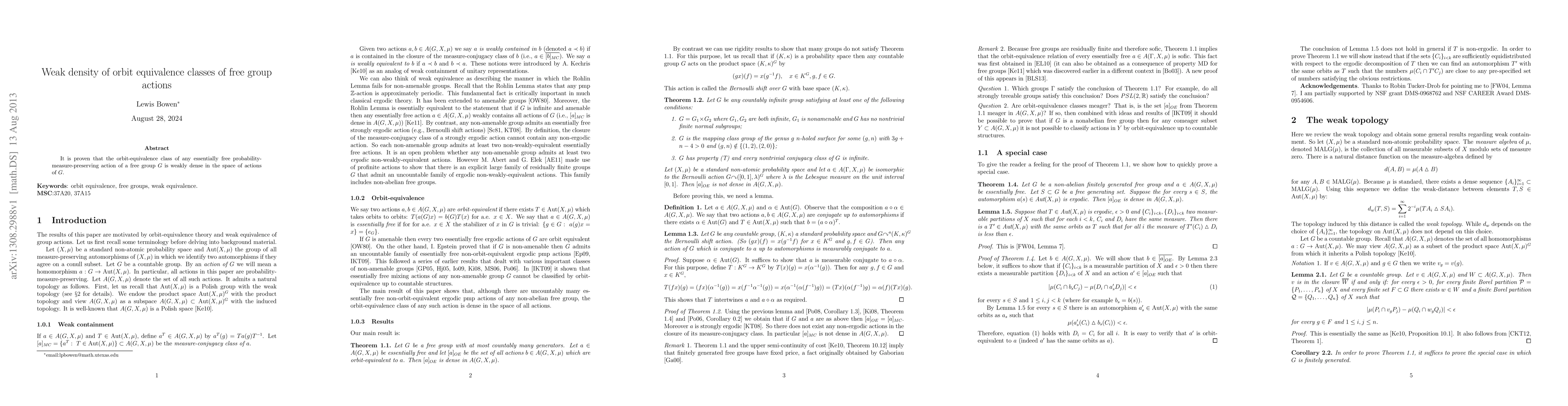 This paper demonstrates that for any essentially free probability-measure-preserving action of a free group $G$, its orbit-equivalence class is weakly dense in the space of all such actions of $G$. This result highlights the richness and complexity of free group actions in dynamical systems.
