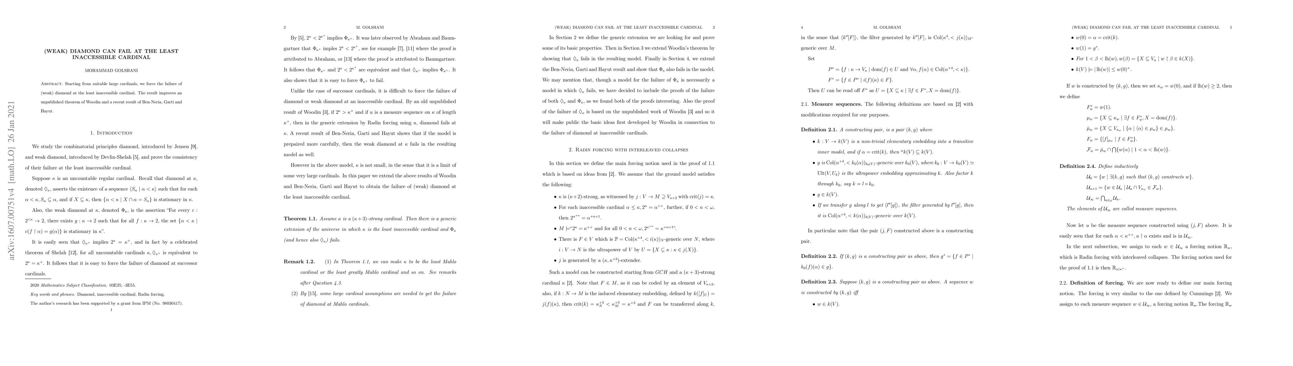 This paper demonstrates that under certain large cardinal assumptions, the weak diamond principle can fail at the least inaccessible cardinal, enhancing previous results by Woodin and Ben-Neria, Garti, and Hayut.