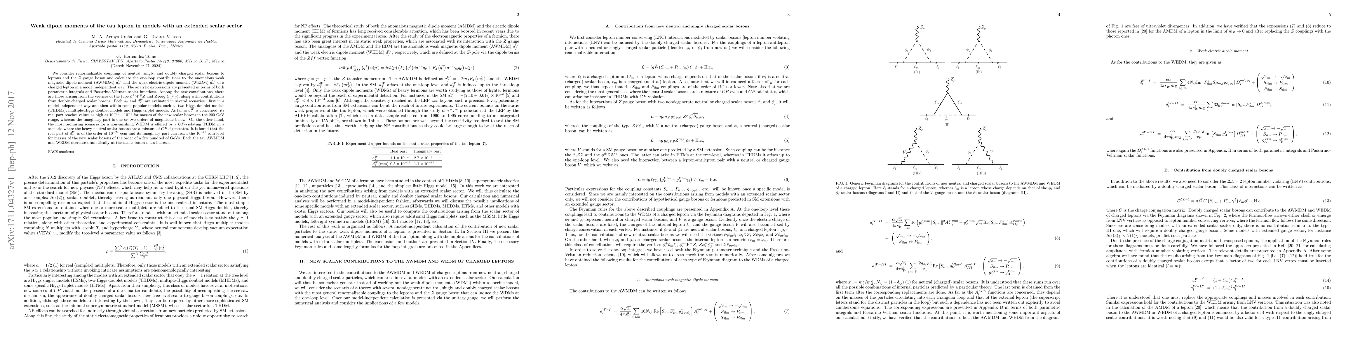 This paper investigates one-loop contributions to the anomalous weak magnetic and electric dipole moments of the tau lepton in models with extended scalar sectors, including THDMs and Higgs triplet models. The real part of the anomalous magnetic dipole moment can reach $10^{-10}-10^{-9}$, while the electric dipole moment is much smaller, around $10^{-24}$ ecm, with both decreasing as scalar boson masses increase.