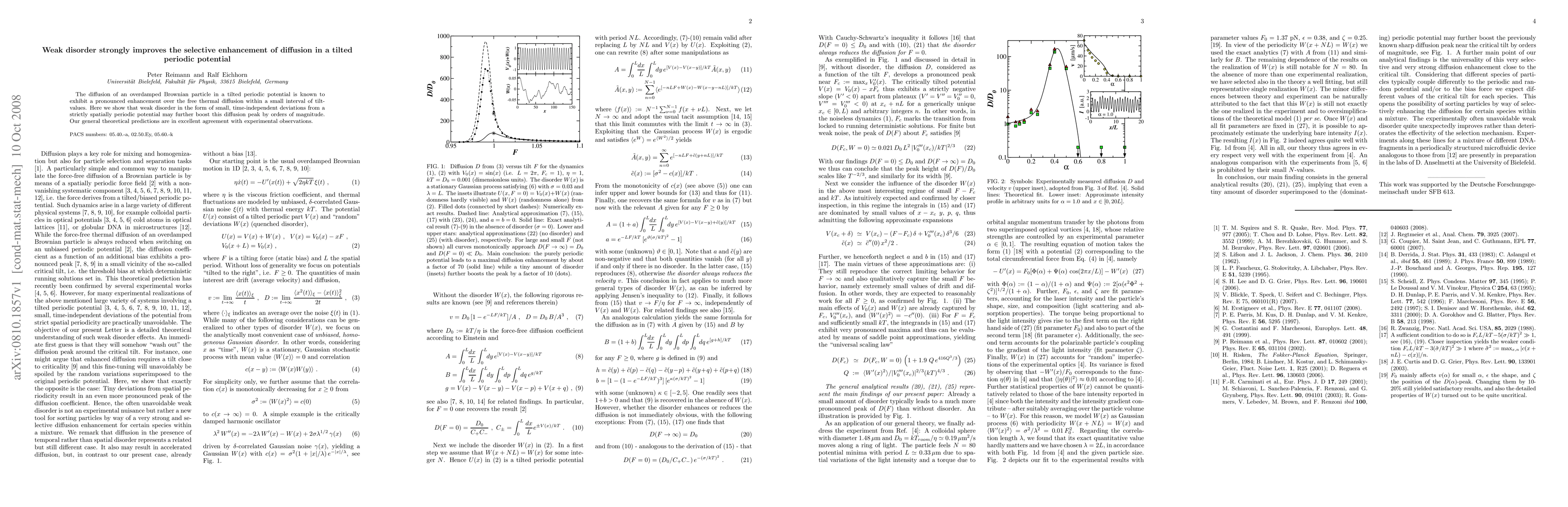 This research demonstrates that weak disorder significantly enhances the diffusion of Brownian particles in a tilted periodic potential, boosting the diffusion peak by orders of magnitude compared to free thermal diffusion, with theoretical predictions matching experimental results.