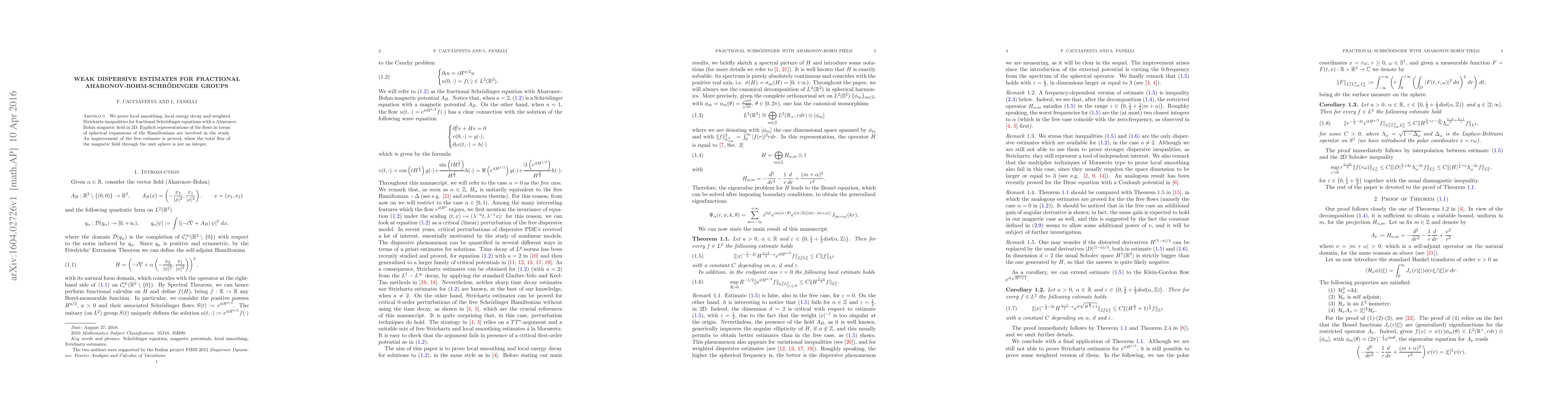 This paper establishes weak dispersive estimates for fractional Schrödinger equations incorporating Aharonov-Bohm magnetic fields in 2D, proving local smoothing, local energy decay, and weighted Strichartz inequalities. An improvement over the free estimate is demonstrated when the magnetic flux through the unit sphere is non-integer.