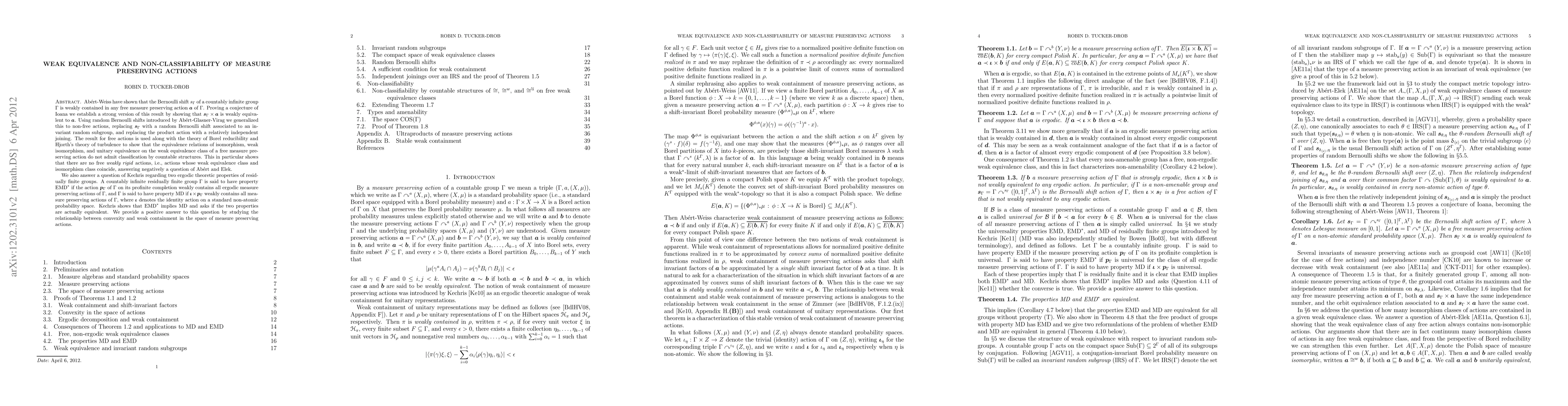 This research paper establishes a strong version of a previous result showing that certain types of group actions are weakly equivalent, and uses this to prove the non-classifiability of isomorphism in free measure preserving actions and two ergodic theoretic properties of residually finite groups.