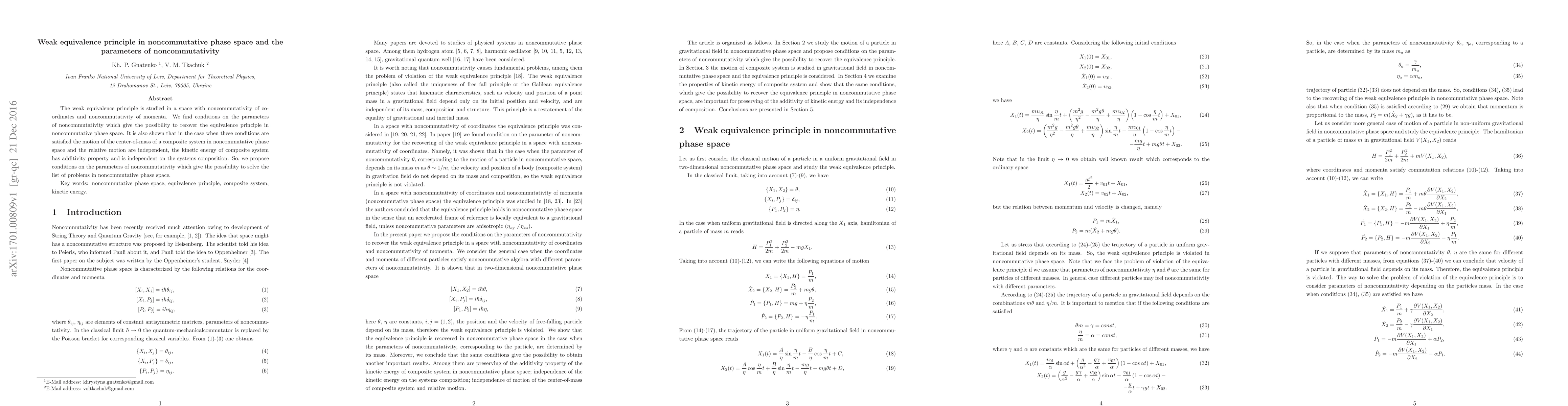 This paper explores the weak equivalence principle in a noncommutative phase space, identifying conditions on noncommutativity parameters that allow for its recovery. It also demonstrates that when these conditions are met, the motion and kinetic energy of composite systems remain independent of their composition.