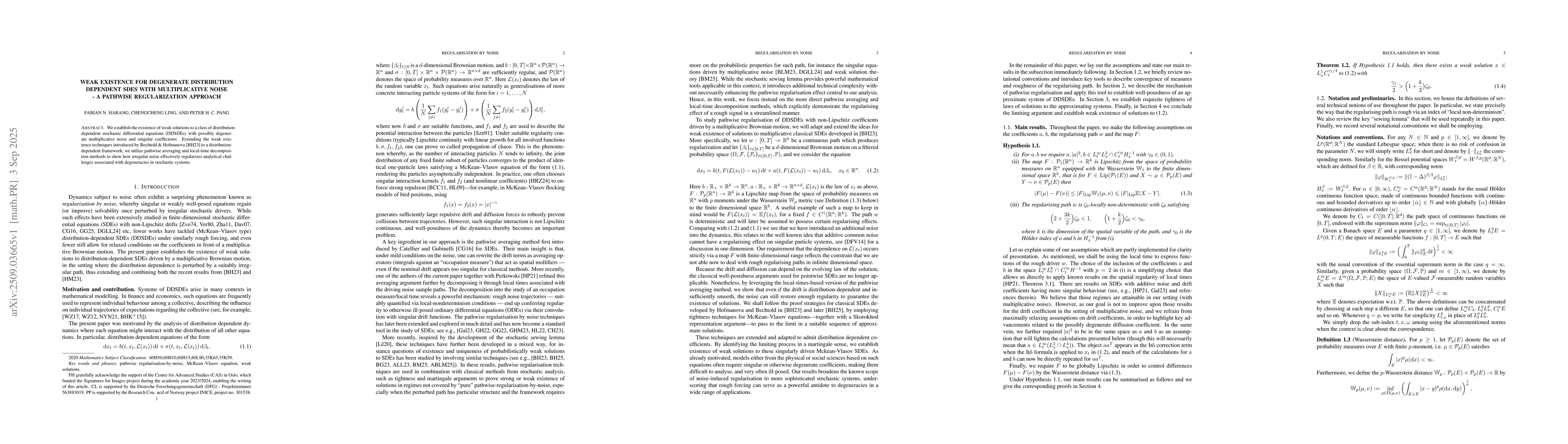 We establish the existence of weak solutions to a class of distribution-dependent stochastic differential equations (DDSDEs) with possibly degenerate multiplicative noise and singular coefficients. Extending the weak existence techniques introduced by Bechtold & Hofmanova 2023 to a distribution-dependent framework, we utilize pathwise averaging and local-time decomposition methods to show how irregular noise effectively regularizes analytical challenges associated with degeneracies in stochastic systems.