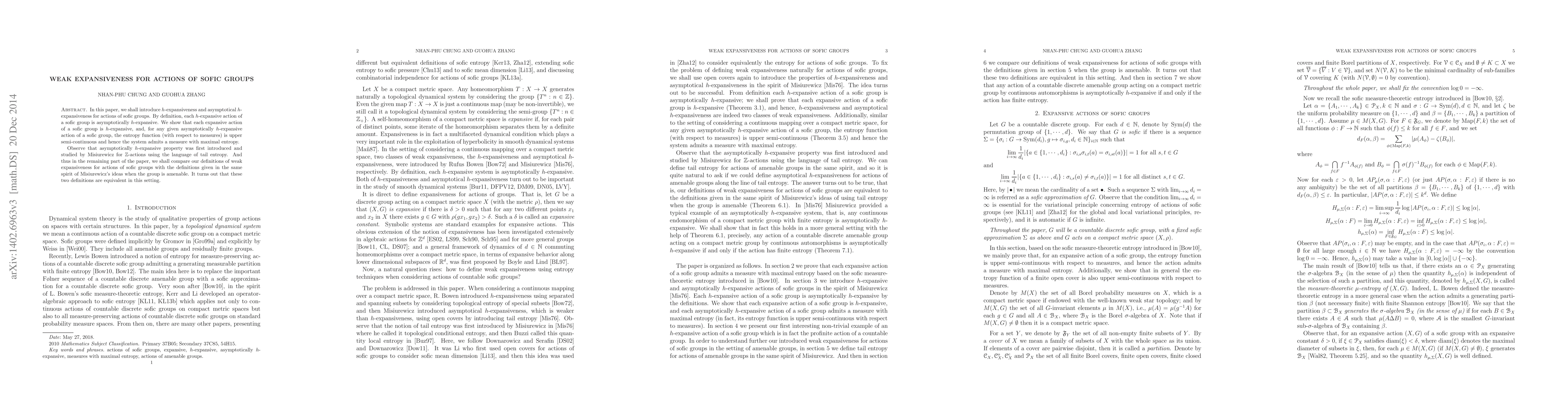 In this paper, we shall introduce $h$-expansiveness and asymptotical $h$-expansiveness for actions of sofic groups. By the definitions, each $h$-expansive action of sofic groups is asymptotically $h$-expansive. We show that each expansive action of sofic groups is $h$-expansive, and, for any given asymptotically $h$-expansive action of sofic groups, the entropy function (with respect to measures) is upper semi-continuous and hence the system admits a measure with maximal entropy. Observe that asymptotically $h$-expansive property was firstly introduced and studied by Misiurewicz for $\mathbb{Z}$-actions using the language of topological conditional entropy. And thus in the remaining part of the paper, we shall compare our definitions of weak expansiveness for actions of sofic groups with the definitions given in the same spirit of Misiurewicz's ideas when the group is amenable. It turns out that these two definitions are equivalent in this setting.
