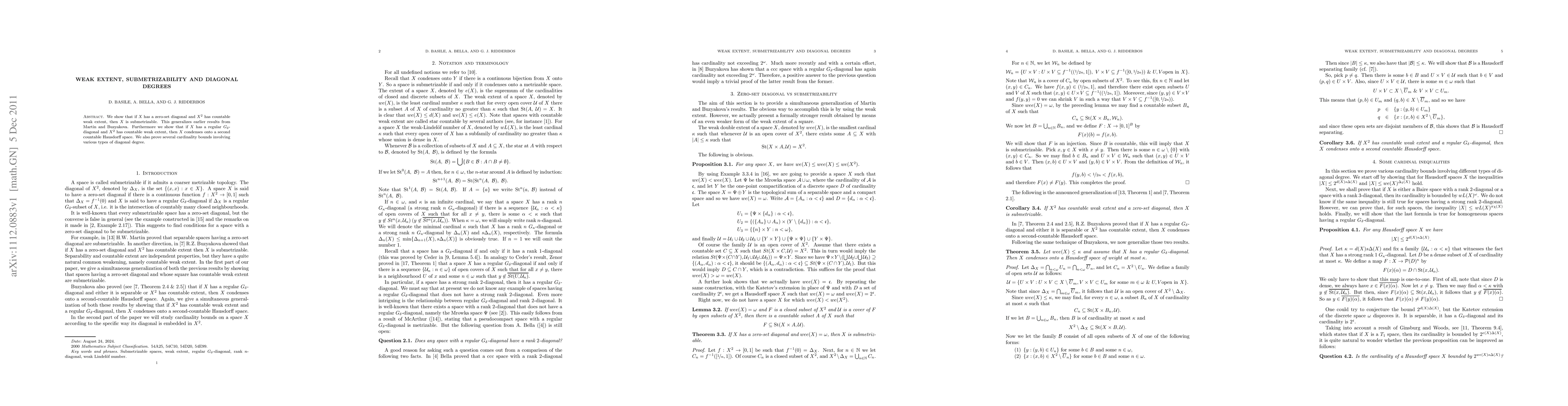 This paper establishes that if a space X has a zero-set diagonal and its square has countable weak extent, then X is submetrizable. It also shows that with certain diagonal properties and weak extent, X can condense onto a second-countable Hausdorff space.