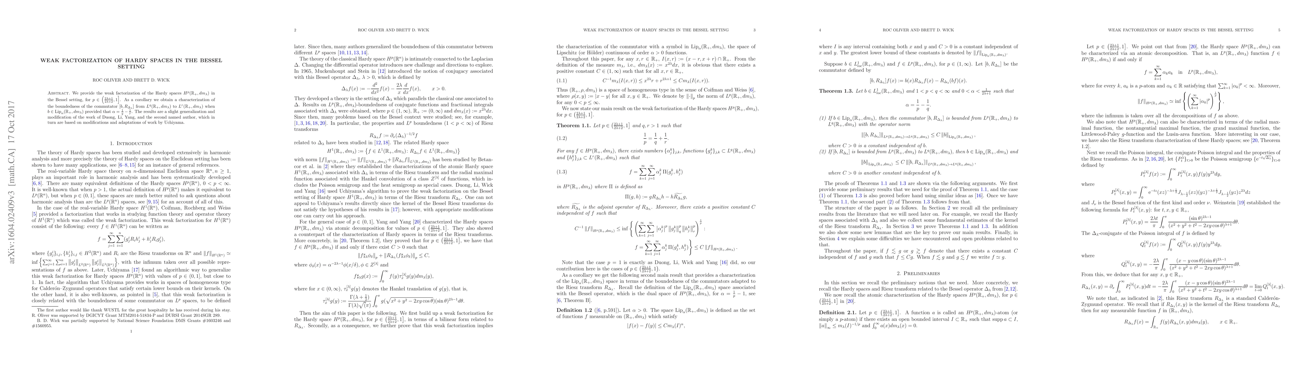 We provide the weak factorization of the Hardy spaces $H^{p}(\mathbb{R}_+, dm_{\lambda})$ in the Bessel setting, for $p\in \left(\frac{2\lambda + 1}{2\lambda + 2}, 1\right]$. As a corollary we obtain a characterization of the boundedness of the commutator $[b, R_{\Delta_{\lambda}}]$ from $L^{q}(\mathbb{R}_+, dm_{\lambda})$ to $L^{r}(\mathbb{R}_+, dm_{\lambda})$ when $b\in \textrm{Lip}_{\alpha}(\mathbb{R}_+, dm_{\lambda})$ provided that $\alpha = \frac{1}{q} - \frac{1}{r}$. The results are a slight generalization and modification of the work of Duong, Li, Yang, and the second named author, which in turn are based on modifications and adaptations of work by Uchiyama.