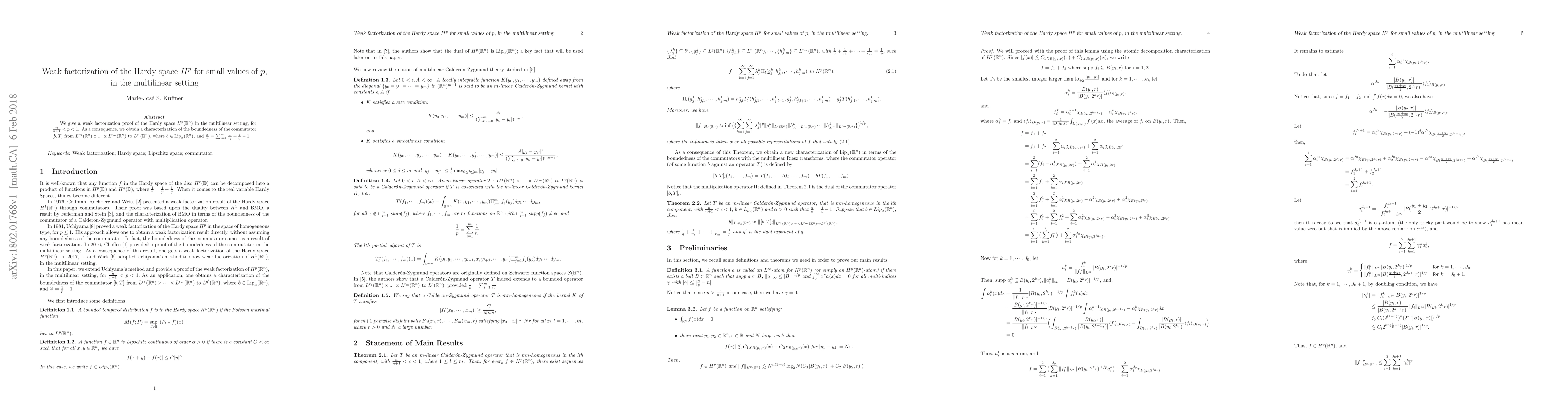 Researchers provide a weak factorization proof for Hardy spaces $H^p$ in multilinear settings, offering insights into the boundedness of commutators involving Lipschitz functions and L^p spaces.