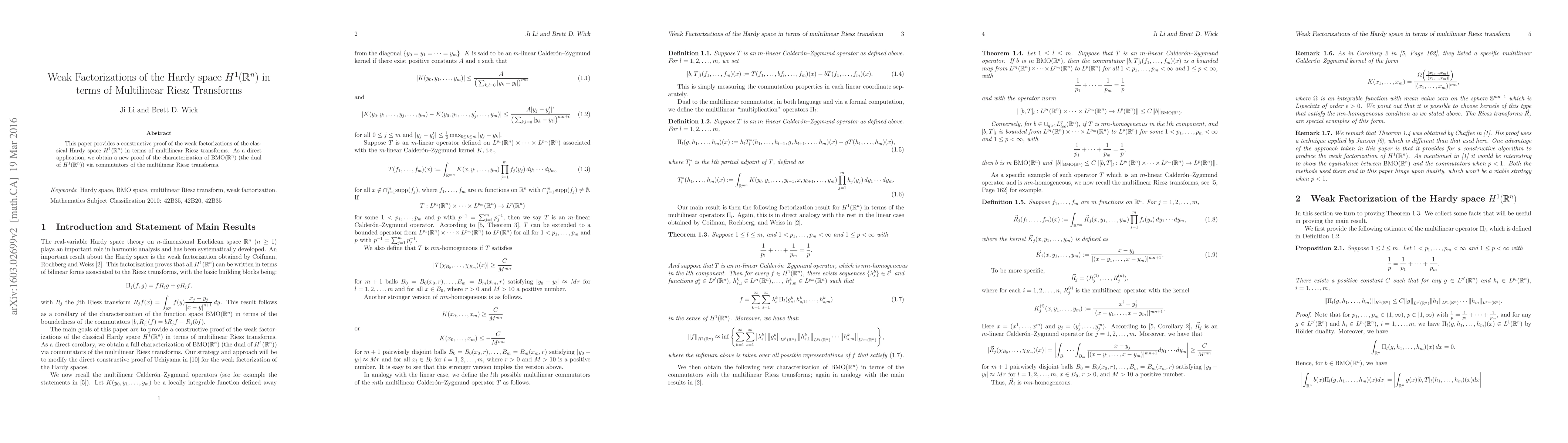 This paper provides a constructive proof of weak factorizations of the Hardy space $H^1( abla}$ in terms of multilinear Riesz transforms, leading to a new characterization of ${ m BMO}( abla)$ via commutators.