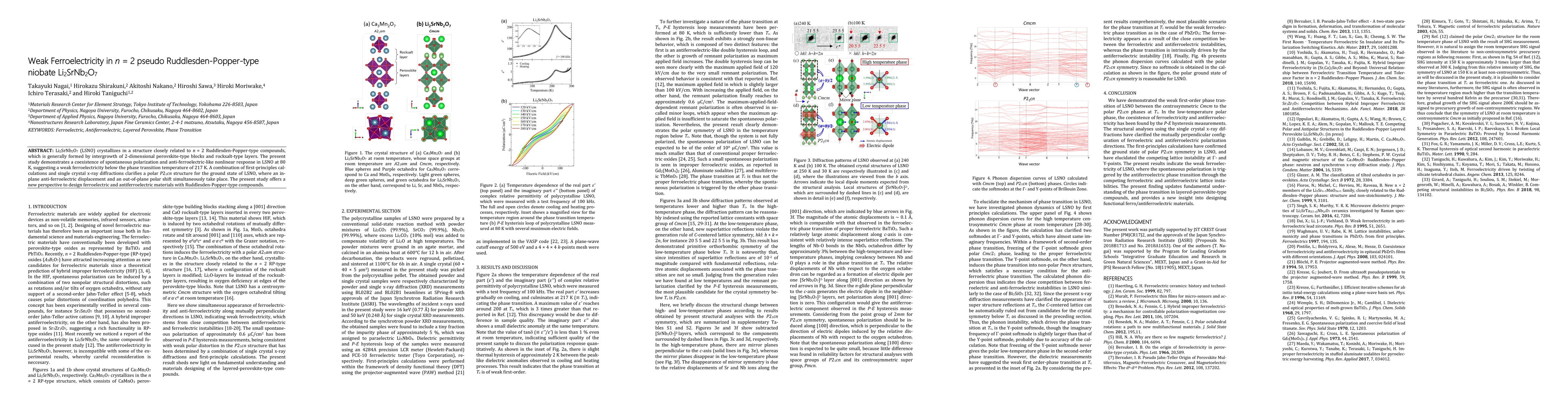 This paper investigates Li2SrNb2O7, revealing weak ferroelectricity below 217 K due to a coexistence of spontaneous polarization and anti-ferroelectric behavior. First-principles calculations and X-ray diffraction identify a polar P21cn structure with in-plane anti-ferroelectric displacement and out-of-plane polar shift.