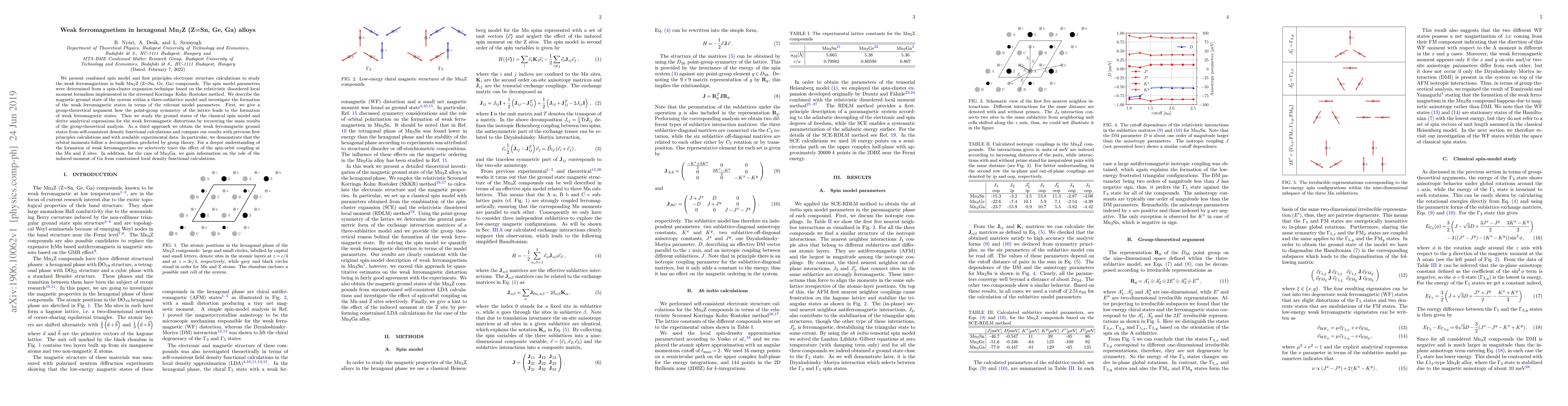 We present combined spin model and first principles electronic structure calculations to study the weak ferromagnetism in bulk Mn$_3$Z (Z=Sn, Ge, Ga) compounds. The spin model parameters were determined from a spin-cluster expansion technique based on the relativistic disordered local moment formalism implemented in the screened Korringa--Kohn--Rostoker method. We describe the magnetic ground state of the system within a three-sublattice model and investigate the formation of the weak ferromagnetic states in terms of the relevant model parameters. First, we give a group-theoretical argument how the point-group symmetry of the lattice leads to the formation of weak ferromagnetic states. Then we study the ground states of the classical spin model and derive analytical expressions for the weak ferromagnetic distortions by recovering the main results of the group-theoretical analysis. As a third approach we obtain the weak ferromagnetic ground states from self-consistent density functional calculations and compare our results with previous first principles calculations and with available experimental data. In particular, we demonstrate that the orbital moments follow a decomposition predicted by group theory. For a deeper understanding of the formation of weak ferromagnetism we selectively trace the effect of the spin-orbit coupling at the Mn and Z sites. In addition, for the case of Mn$_3$Ga, we gain information on the role of the induced moment of Ga from constrained local density functional calculations.