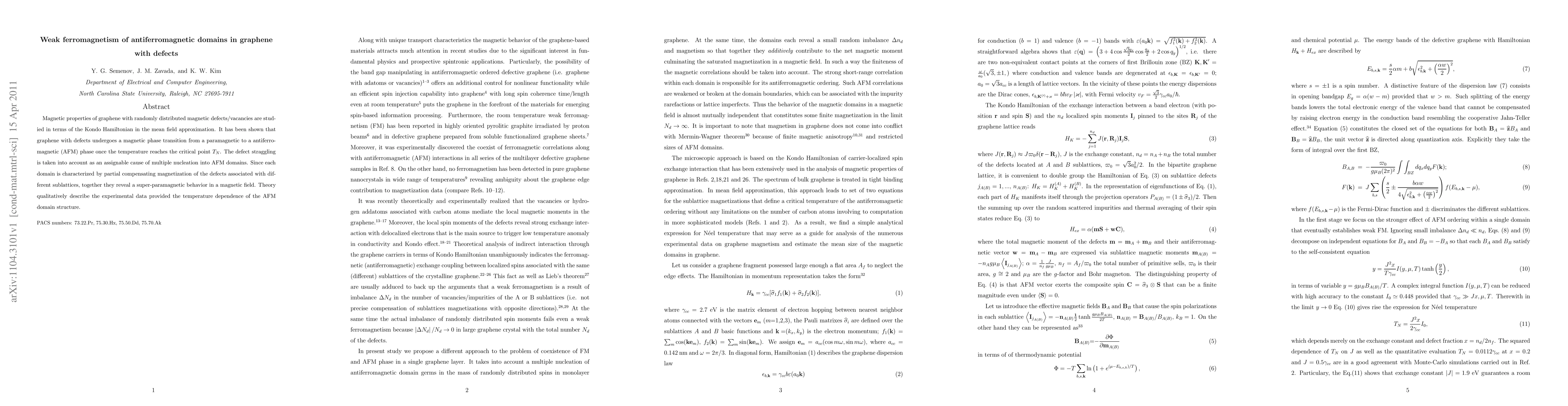 Magnetic properties of graphene with randomly distributed magnetic defects/vacancies are studied in terms of the Kondo Hamiltonian in the mean field approximation. It has been shown that graphene with defects undergoes a magnetic phase transition from a paramagnetic to a antiferromagnetic (AFM) phase once the temperature reaches the critical point $T_{N}$. The defect straggling is taken into account as an assignable cause of multiple nucleation into AFM domains. Since each domain is characterized by partial compensating magnetization of the defects associated with different sublattices, together they reveal a super-paramagnetic behavior in a magnetic field. Theory qualitatively describe the experimental data provided the temperature dependence of the AFM domain structure.