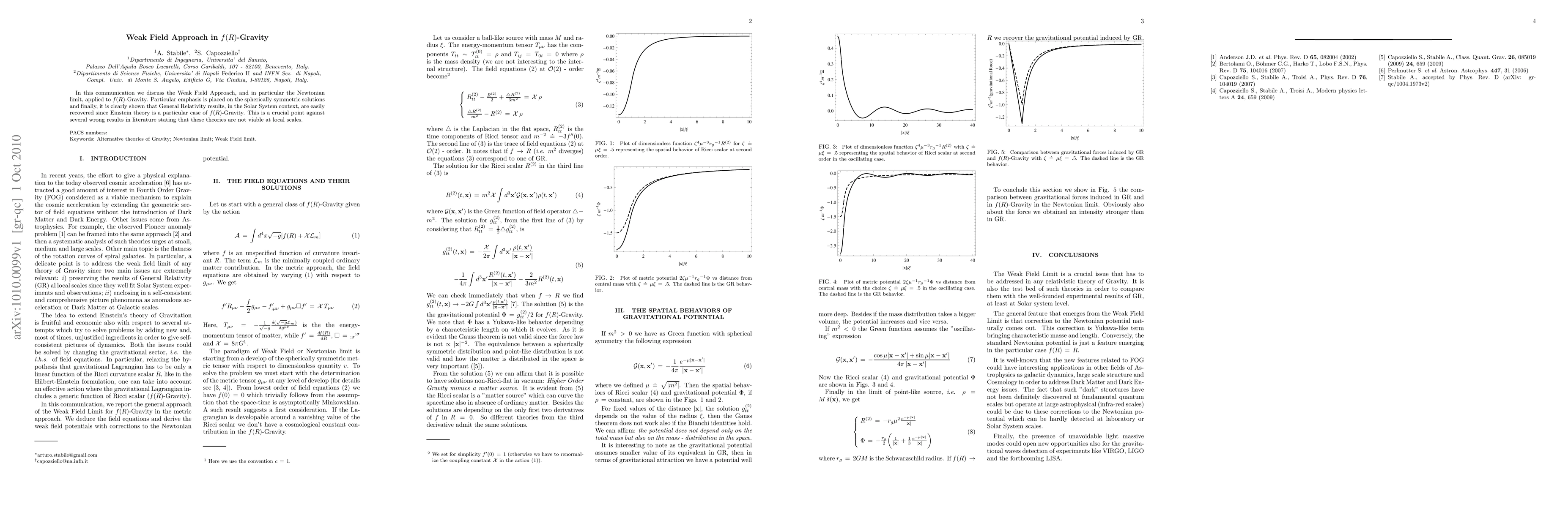 This paper discusses the Weak Field Approach in f(R)-Gravity, demonstrating that General Relativity results are recovered in the Solar System context, dispelling misconceptions about f(R)-Gravity's viability at local scales, particularly focusing on spherically symmetric solutions.