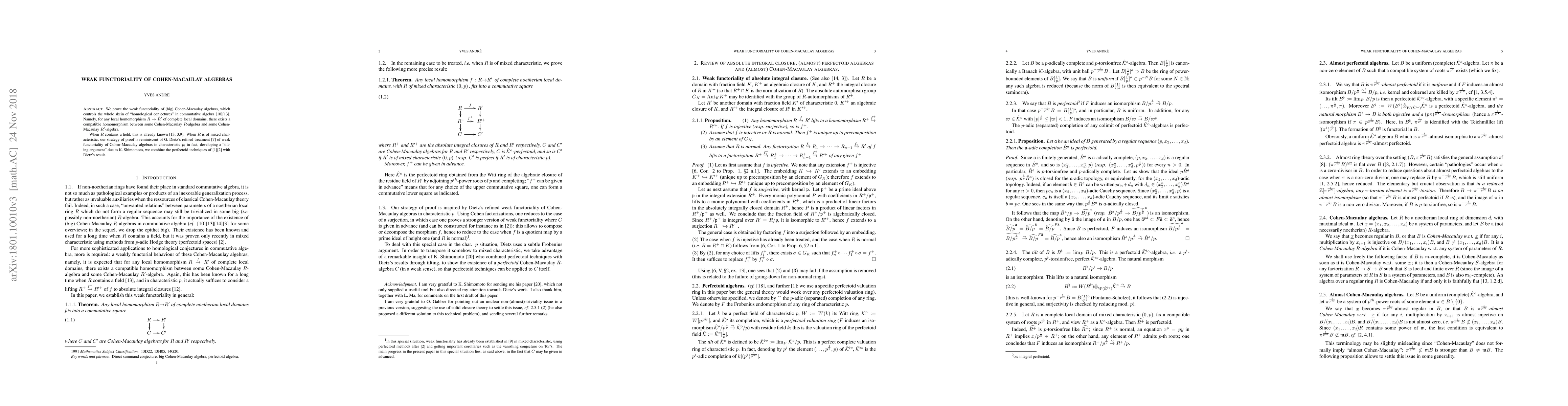 The paper proves the weak functoriality of (big) Cohen-Macaulay algebras, ensuring a compatible homomorphism between such algebras under local homomorphisms of complete local domains, extending known results to mixed characteristic cases using refined techniques and perfectoid methods.