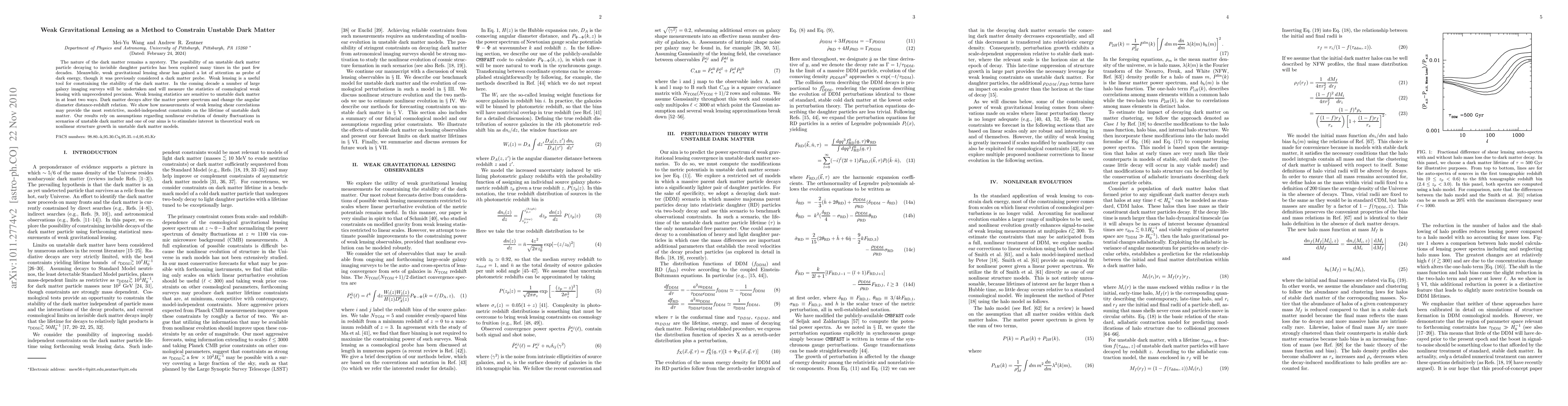 This paper explores weak gravitational lensing as a method to constrain the stability of unstable dark matter particles, suggesting that upcoming galaxy imaging surveys will provide precise measurements of weak lensing statistics. These statistics are sensitive to dark matter decay, offering model-independent constraints on the lifetime of unstable dark matter through alterations in the matter power spectrum and angular diameter distance-redshift relation.