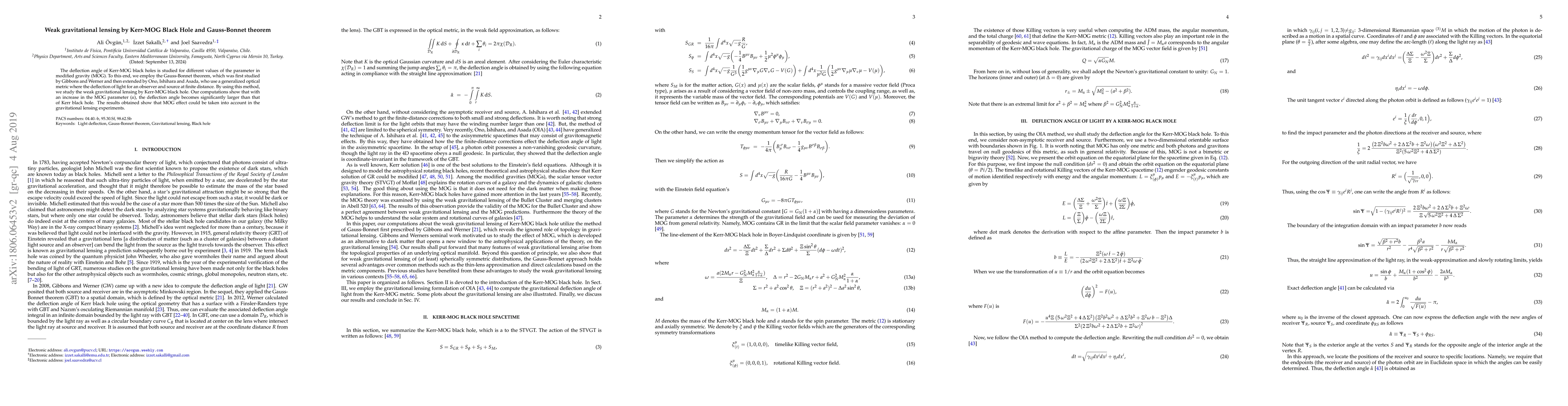 This paper investigates the deflection angle of light around Kerr-MOG black holes using the Gauss-Bonnet theorem, revealing that the MOG parameter ($\alpha$) significantly increases the deflection angle compared to Kerr black holes, suggesting MOG effects could be detected in gravitational lensing experiments.