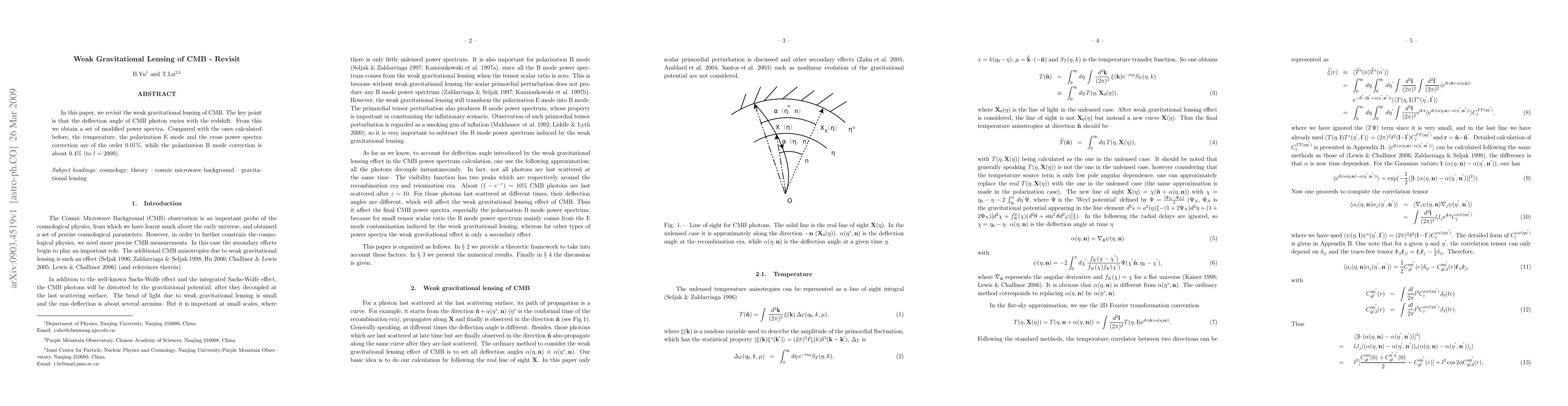 In this paper, we revisit the weak gravitational lensing of CMB. The key point is that the deflection angle of CMB photon varies with the redshift. From this we obtain a set of modified power spectra. Compared with the ones calculated before, the temperature, the polarization E mode and the cross power spectra correction are of the order $0.01 %$, while the polarization B mode correction is about $0.4 %$ (to $l=2000$).