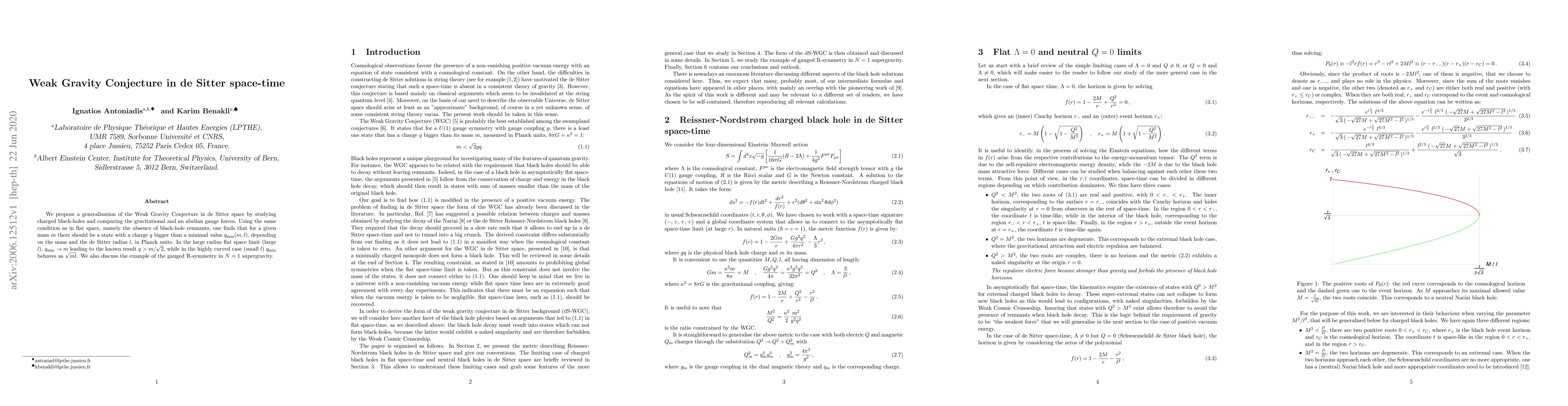 We propose a generalisation of the Weak Gravity Conjecture in de Sitter space by studying charged black-holes and comparing the gravitational and an abelian gauge forces. Using the same condition as in flat space, namely the absence of black-hole remnants, one finds that for a given mass $m$ there should be a state with a charge $q$ bigger than a minimal value $q_{\rm min}(m,l)$, depending on the mass and the de Sitter radius $l$, in Planck units. In the large radius flat space limit (large $l$), $q_{\rm min}\to m$ leading to the known result $q>m/\sqrt{2}$, while in the highly curved case (small $l$) $q_{\rm min}$ behaves as $\sqrt{ml}$. We also discuss the example of the gauged R-symmetry in $N=1$ supergravity.