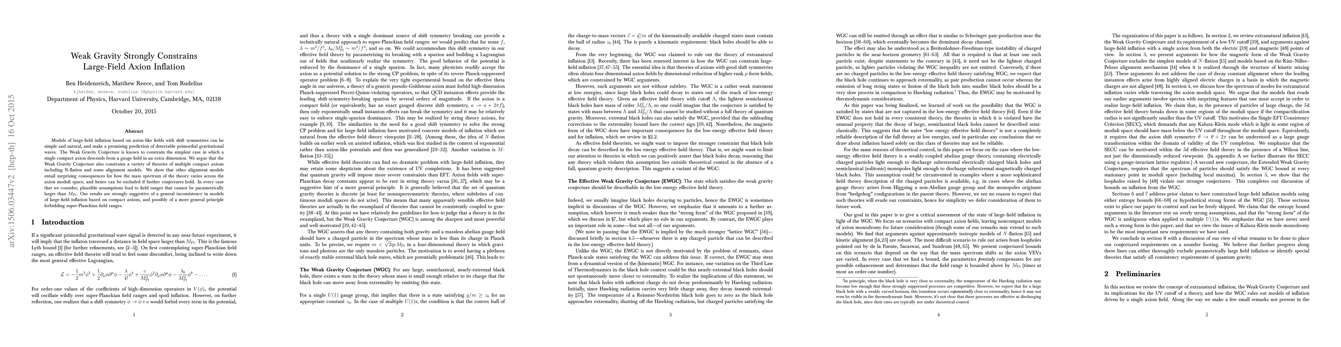 Models of large-field inflation based on axion-like fields with shift symmetries can be simple and natural, and make a promising prediction of detectable primordial gravitational waves. The Weak Gravity Conjecture is known to constrain the simplest case in which a single compact axion descends from a gauge field in an extra dimension. We argue that the Weak Gravity Conjecture also constrains a variety of theories of multiple compact axions including N-flation and some alignment models. We show that other alignment models entail surprising consequences for how the mass spectrum of the theory varies across the axion moduli space, and hence can be excluded if further conjectures hold. In every case that we consider, plausible assumptions lead to field ranges that cannot be parametrically larger than the Planck scale. Our results are strongly suggestive of a general inconsistency in models of large-field inflation based on compact axions, and possibly of a more general principle forbidding super-Planckian field ranges.