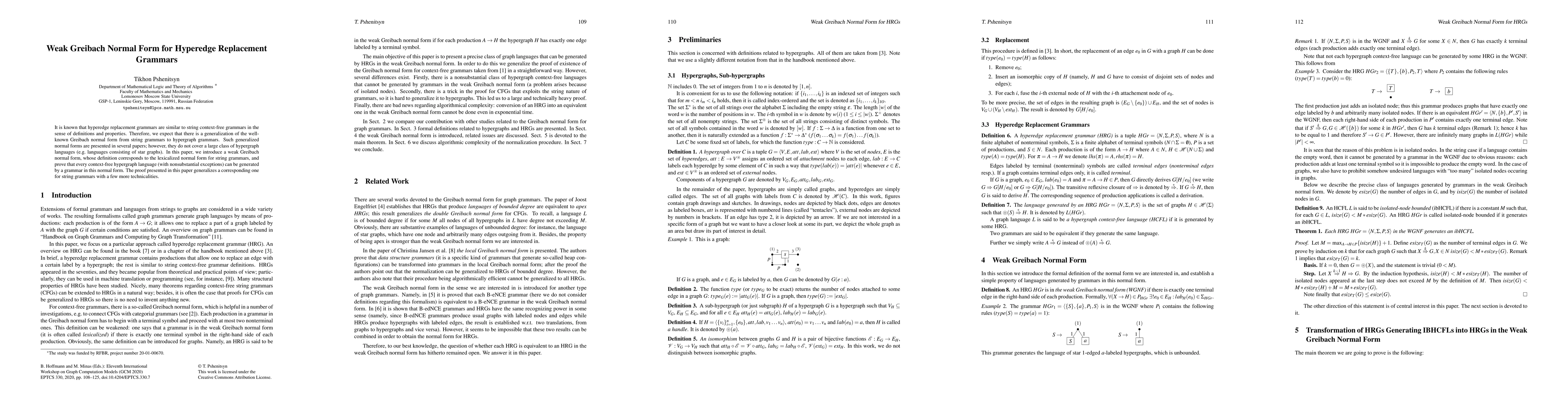 Researchers introduced a weak Greibach normal form for hyperedge replacement grammars, proving that most context-free hypergraph languages can be generated in this format, building on previous work on string grammars.