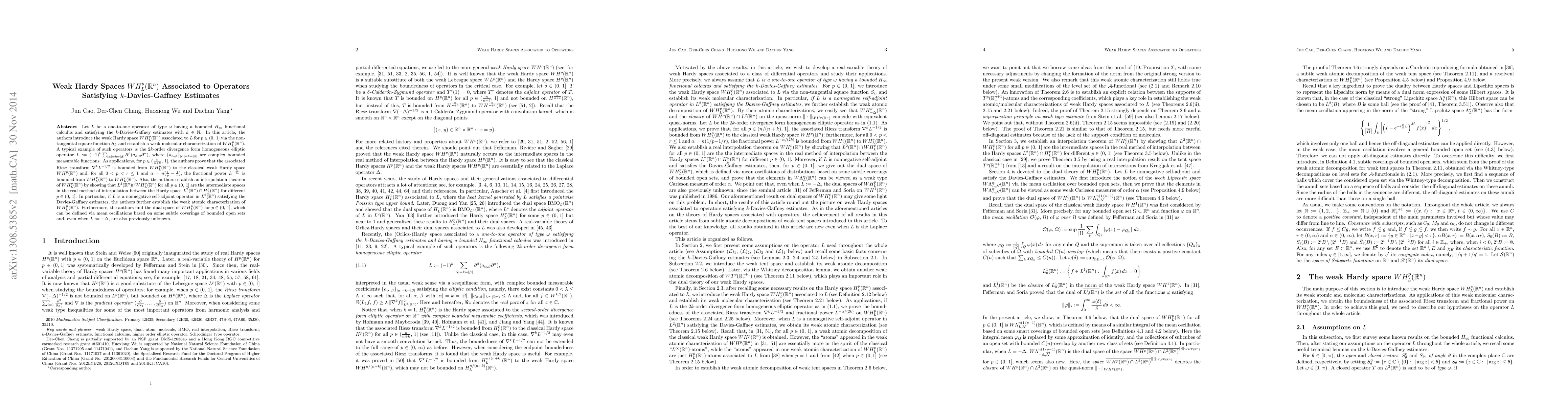 This paper introduces weak Hardy spaces $WH_L^p(\mathbb{R}^n)$ associated with operators $L$ satisfying $k$-Davies-Gaffney estimates. It establishes a weak molecular characterization and proves boundedness results for associated Riesz transforms and fractional powers. The dual space is also identified, along with a weak atomic characterization when $L$ is a nonnegative self-adjoint operator.