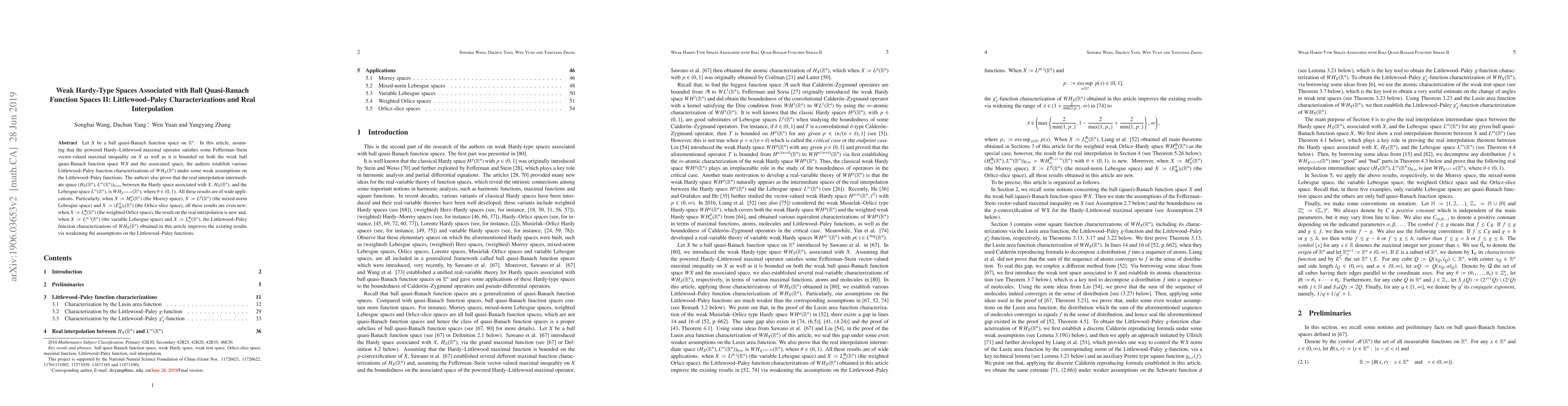 Let $X$ be a ball quasi-Banach function space on ${\mathbb R}^n$. In this article, assuming that the powered Hardy--Littlewood maximal operator satisfies some Fefferman--Stein vector-valued maximal inequality on $X$ as well as it is bounded on both the weak ball quasi-Banach function space $WX$ and the associated space, the authors establish various Littlewood--Paley function characterizations of $WH_X({\mathbb R}^n)$ under some weak assumptions on the Littlewood--Paley functions. The authors also prove that the real interpolation intermediate space $(H_{X}({\mathbb R}^n),L^\infty({\mathbb R}^n))_{\theta,\infty}$, between the Hardy space associated with $X$, $H_{X}({\mathbb R}^n)$, and the Lebesgue space $L^\infty({\mathbb R}^n)$, is $WH_{X^{{1}/{(1-\theta)}}}({\mathbb R}^n)$, where $\theta\in (0, 1)$. All these results are of wide applications. Particularly, when $X:=M_q^p({\mathbb R}^n)$ (the Morrey space), $X:=L^{\vec{p}}({\mathbb R}^n)$ (the mixed-norm Lebesgue space) and $X:=(E_\Phi^q)_t({\mathbb R}^n)$ (the Orlicz-slice space), all these results are even new; when $X:=L_\omega^\Phi({\mathbb R}^n)$ (the weighted Orlicz space), the result on the real interpolation is new and, when $X:=L^{p(\cdot)}({\mathbb R}^n)$ (the variable Lebesgue space) and $X:=L_\omega^\Phi({\mathbb R}^n)$, the Littlewood--Paley function characterizations of $WH_X({\mathbb R}^n)$ obtained in this article improves the existing results via weakening the assumptions on the Littlewood--Paley functions.