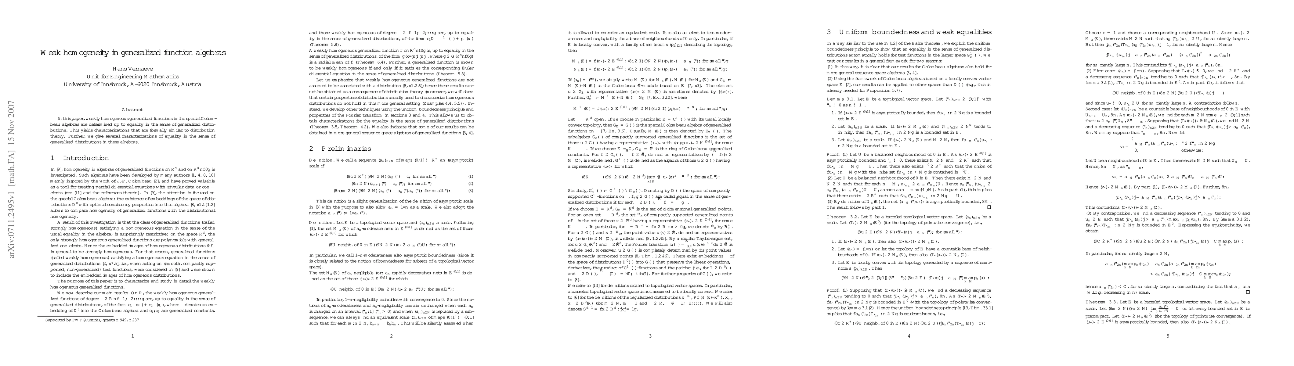 The paper presents a detailed analysis of weak homogeneity in Colombeau algebras, extending known results from distribution theory to this more general setting, and provides new characterizations of equality in generalized distributions.