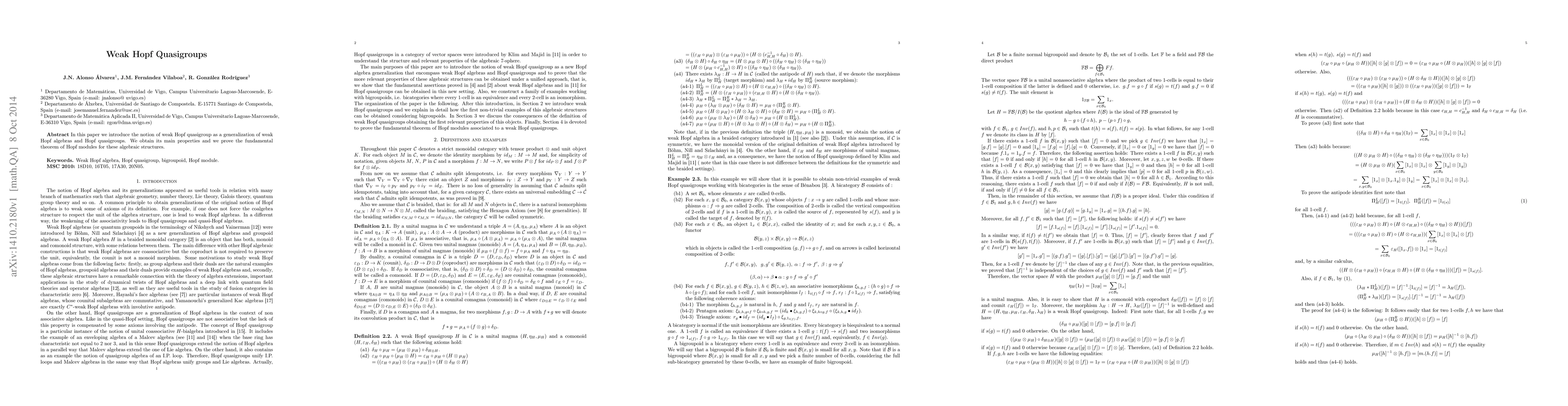 This paper introduces weak Hopf quasigroups, a generalization of weak Hopf algebras and Hopf quasigroups, and proves their main properties and the fundamental theorem of Hopf modules for these structures.