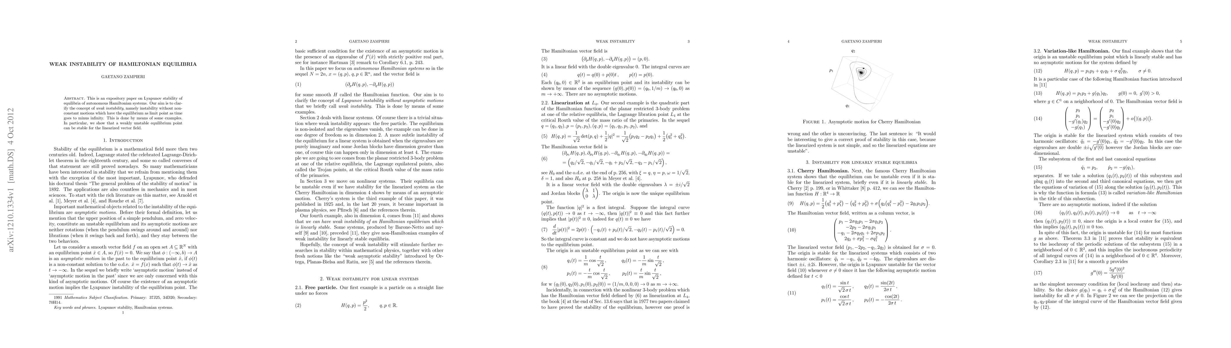 This is an expository paper on Lyapunov stability of equilibria of autonomous Hamiltonian systems. Our aim is to clarify the concept of weak instability, namely instability without non-constant motions which have the equilibrium as limit point as time goes to minus infinity. This is done by means of some examples. In particular, we show that a weakly unstable equilibrium point can be stable for the linearized vector field.