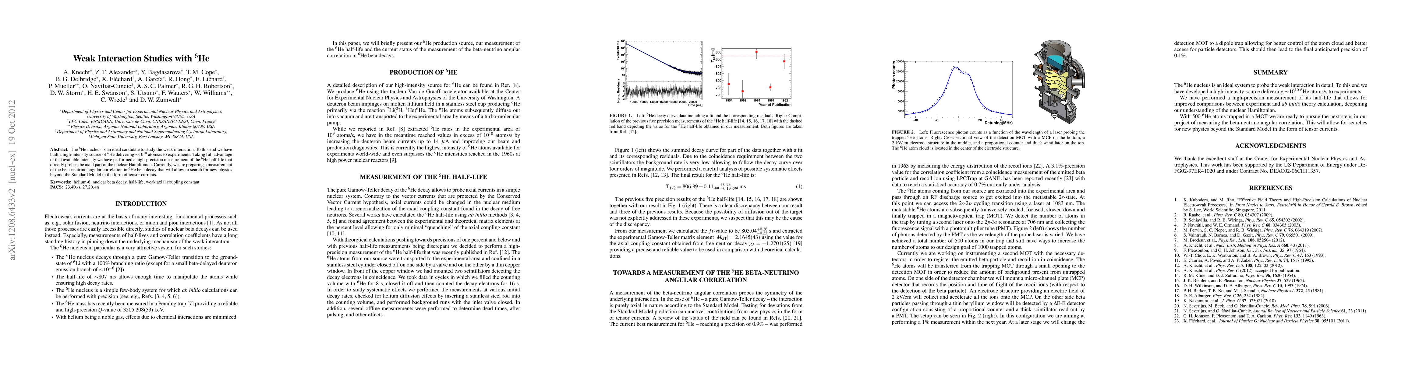 This paper reports on the development of a high-intensity 6He source for weak interaction studies, achieving a high-precision measurement of 6He's half-life, and outlines plans for a new beta-neutrino angular correlation measurement to search for new physics beyond the Standard Model.