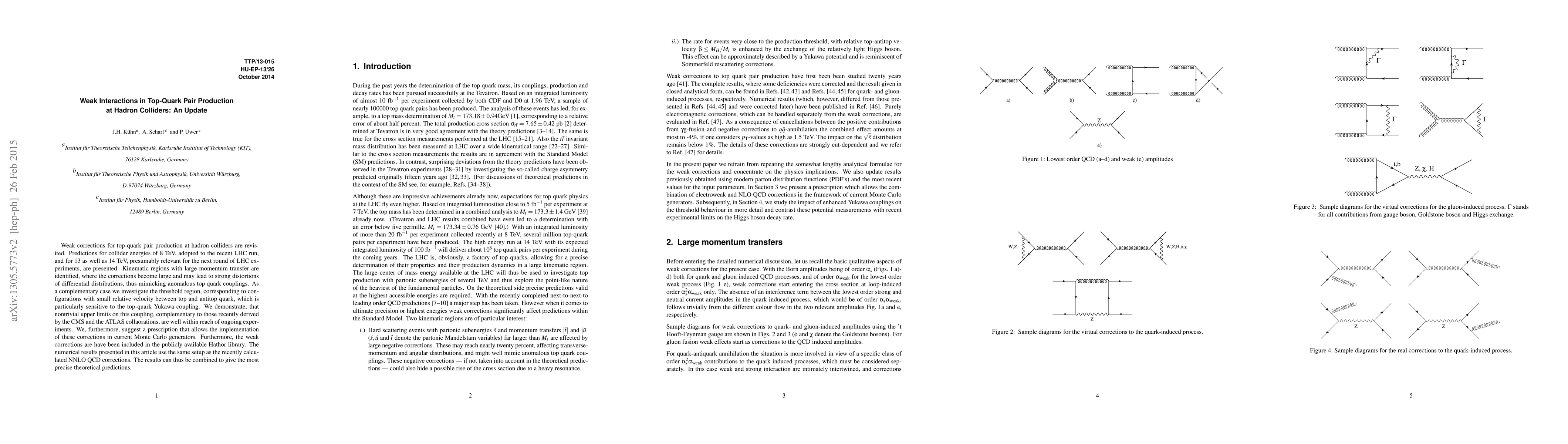 Weak corrections for top-quark pair production at hadron colliders are revisited. Predictions for collider energies of 8 TeV, adopted to the recent LHC run, and for 13 as well as 14 TeV, presumably relevant for the next round of LHC experiments, are presented. Kinematic regions with large momentum transfer are identified, where the corrections become large and may lead to strong distortions of differential distributions, thus mimicking anomalous top quark couplings. As a complementary case we investigate the threshold region, corresponding to configurations with small relative velocity between top and antitop quark, which is particularly sensitive to the top-quark Yukawa coupling. We demonstrate, that nontrivial upper limits on this coupling, complementary to those recently derived by the CMS and the ATLAS collaorations, are well within reach of ongoing experiments. In addition we suggest a prescription that allows the implementation of these corrections in current Monte Carlo generators. Furthermore, the weak corrections have been included in the publicly available Hathor library. The numerical results presented in this article use the same setup as the recently calculated NNLO QCD corrections. The results can thus be combined to give the most precise theoretical predictions.
