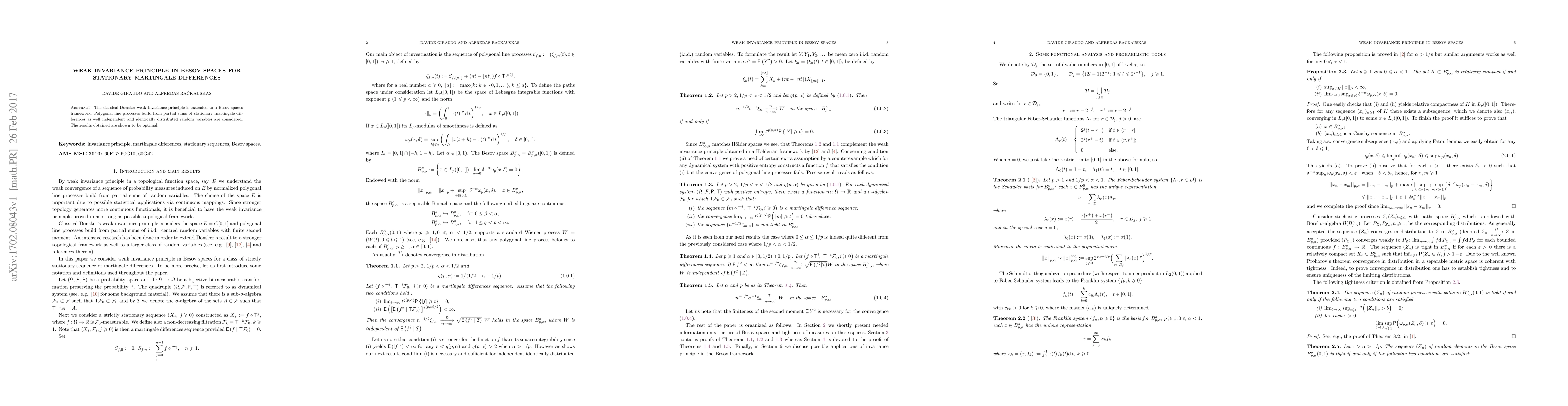 The paper establishes a weak invariance principle in Besov spaces for stationary martingale differences and i.i.d. random variables, providing a theoretical foundation for further research in stochastic analysis.