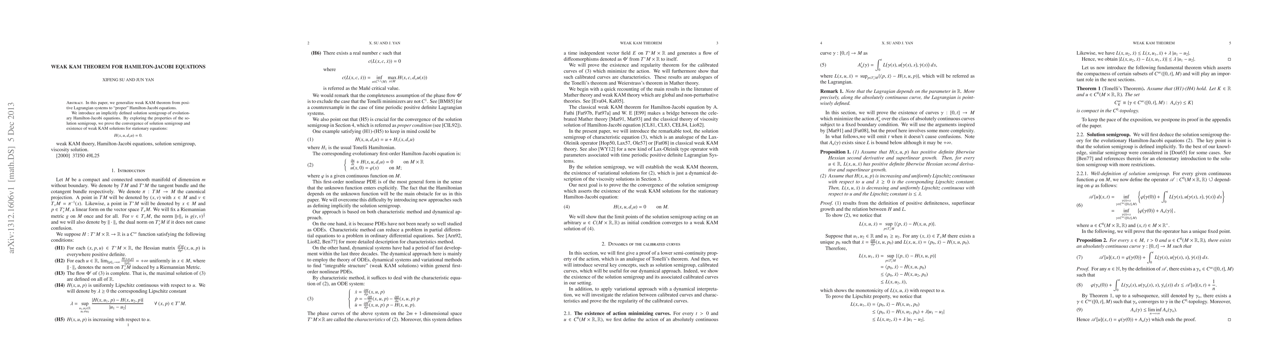 This paper generalizes the weak KAM theorem to proper Hamilton-Jacobi equations, introducing a solution semigroup for evolutionary equations and proving its convergence and the existence of weak KAM solutions for stationary equations.