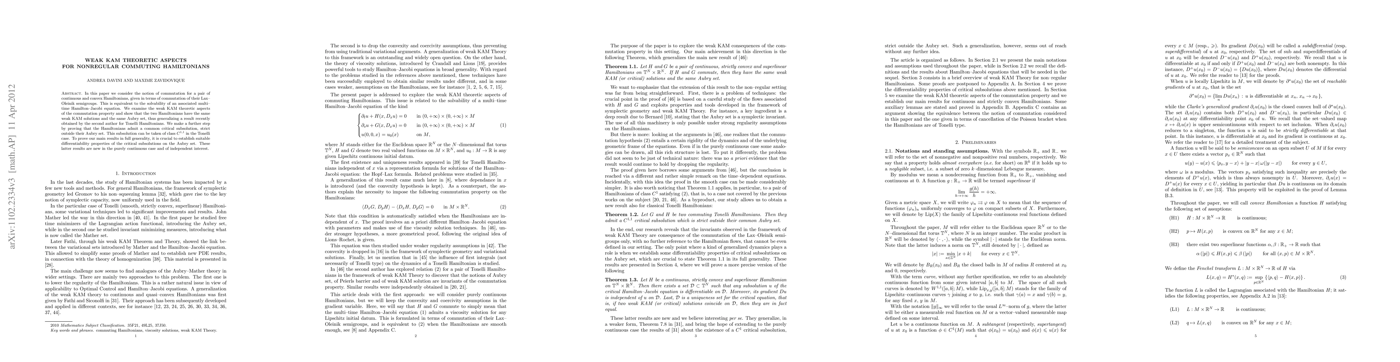 This paper explores the commutation of continuous and convex Hamiltonians through their Lax-Oleinik semigroups, demonstrating that they share the same weak KAM solutions and Aubry set. It generalizes previous results for Tonelli Hamiltonians and introduces new differentiability properties for critical subsolutions on the Aubry set, crucial for proving the main results.