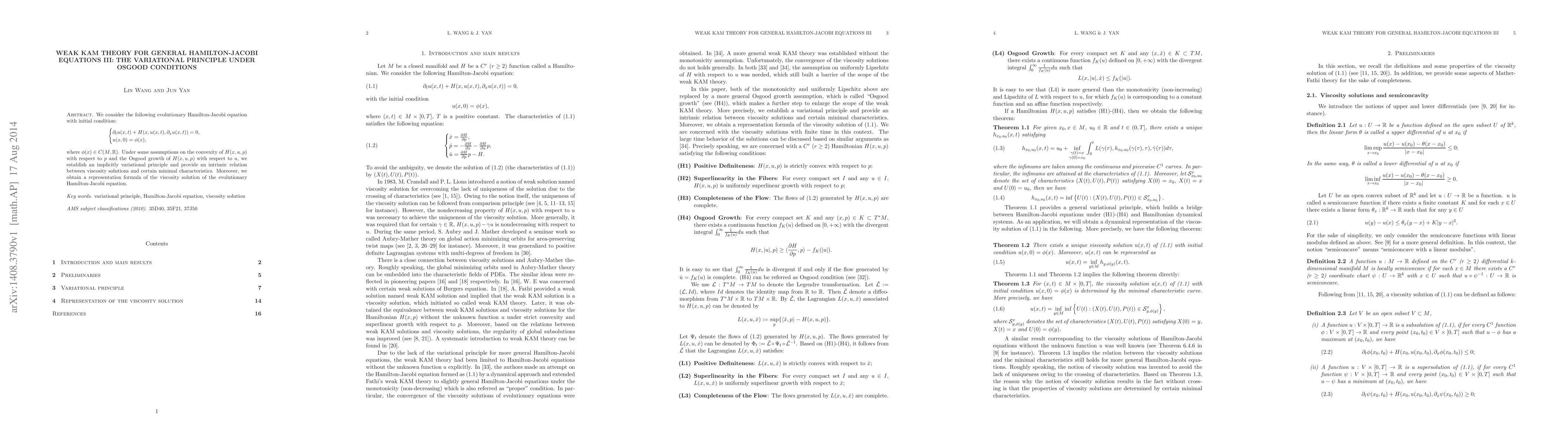 Researchers establish an implicitly variational principle for a specific type of Hamilton-Jacobi equation under certain conditions, linking viscosity solutions to minimal characteristics and providing a representation formula for the solution.