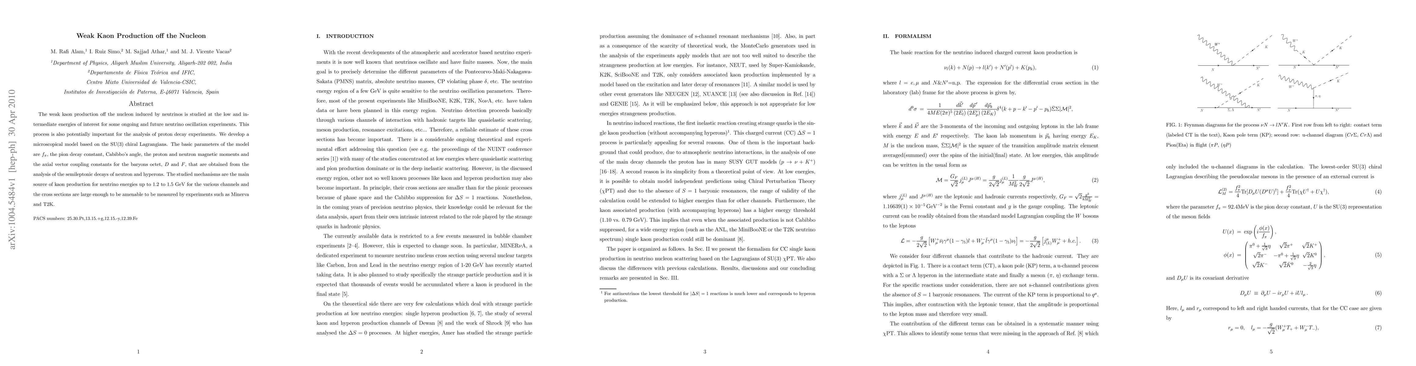 The weak kaon production off the nucleon induced by neutrinos is studied at the low and intermediate energies of interest for some ongoing and future neutrino oscillation experiments. This process is also potentially important for the analysis of proton decay experiments. We develop a microscopical model based on the SU(3) chiral Lagrangians. The basic parameters of the model are fpi, the pion decay constant, Cabibbo's angle, the proton and neutron magnetic moments and the axial vector coupling constants for the baryons octet, D and F, that are obtained from the analysis of the semileptonic decays of neutron and hyperons. The studied mechanisms are the main source of kaon production for neutrino energies up to 1.2 to 1.5 GeV for the various channels and the cross sections are large enough to be amenable to be measured by experiments such as Minerva and T2K.