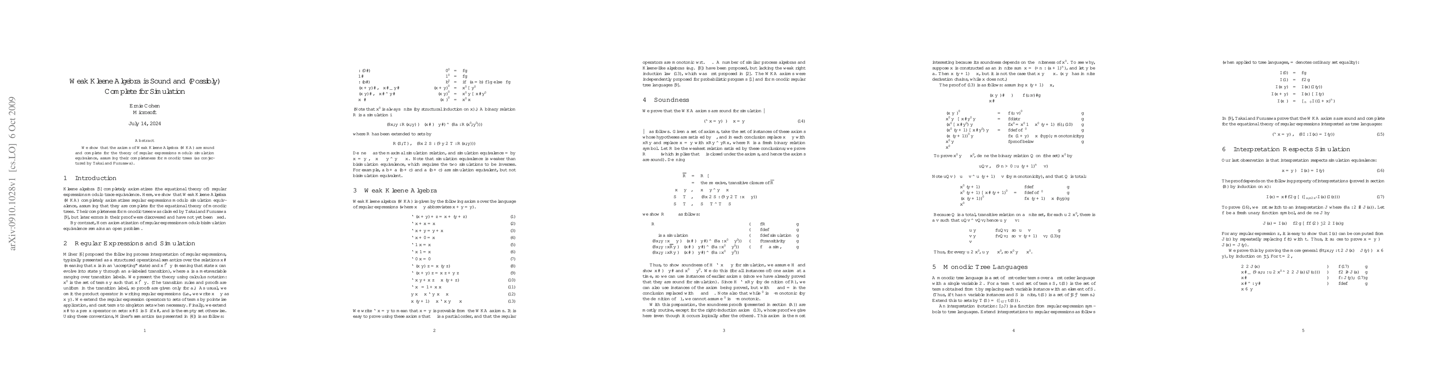 We show that the axioms of Weak Kleene Algebra (WKA) are sound and complete for the theory of regular expressions modulo simulation equivalence, assuming their completeness for monodic trees (as conjectured by Takai and Furusawa).