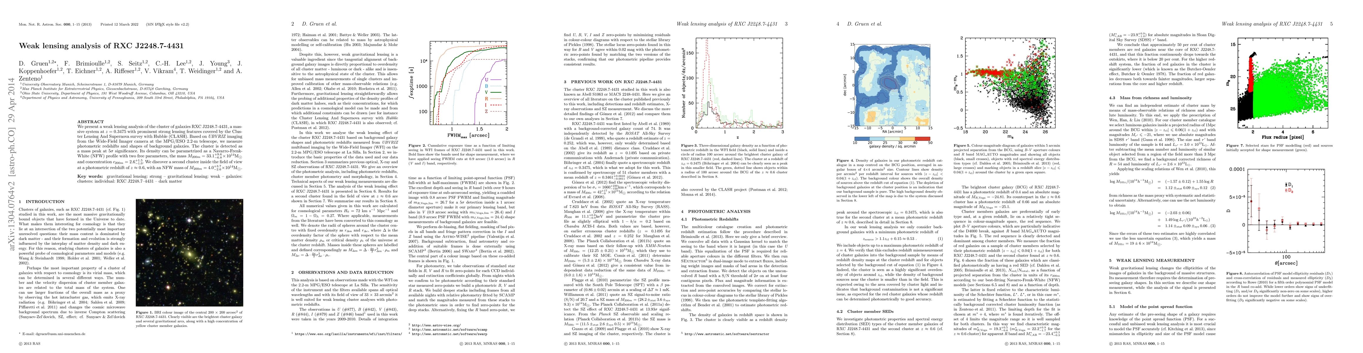 This paper presents a weak lensing analysis of the galaxy cluster RXC J2248.7-4431, estimating its mass and concentration using UBVRIZ imaging. A second cluster is also detected within the field of view.