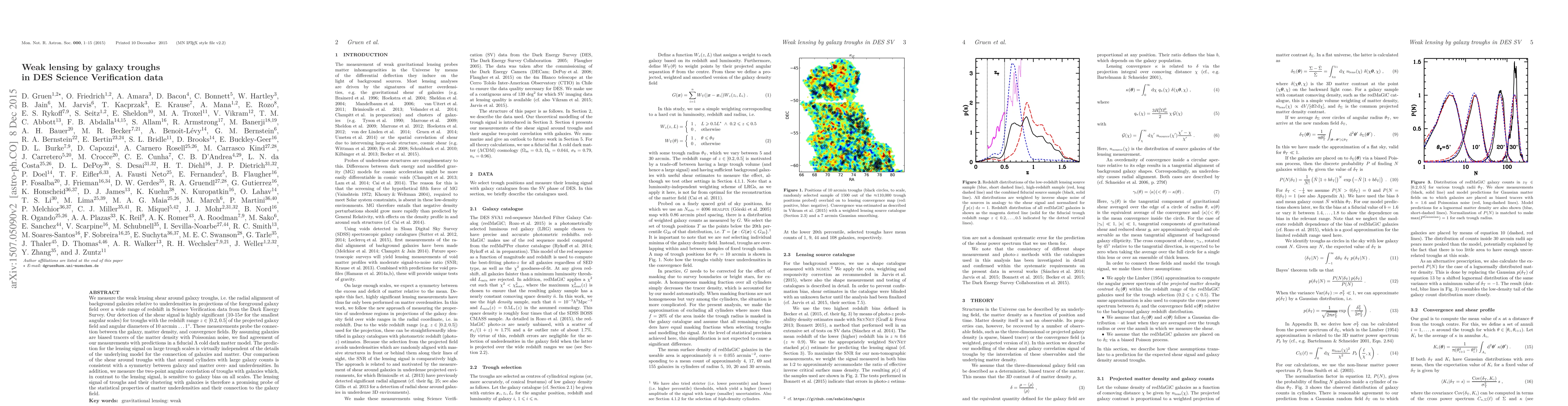 This paper measures weak lensing shear around galaxy troughs in Dark Energy Survey Science Verification data, finding a highly significant signal that probes the relationship between galaxy and matter density fields. The results support predictions from a Lambda cold dark matter model and suggest that the lensing signal is a promising probe for the statistical properties of matter underdensities.
