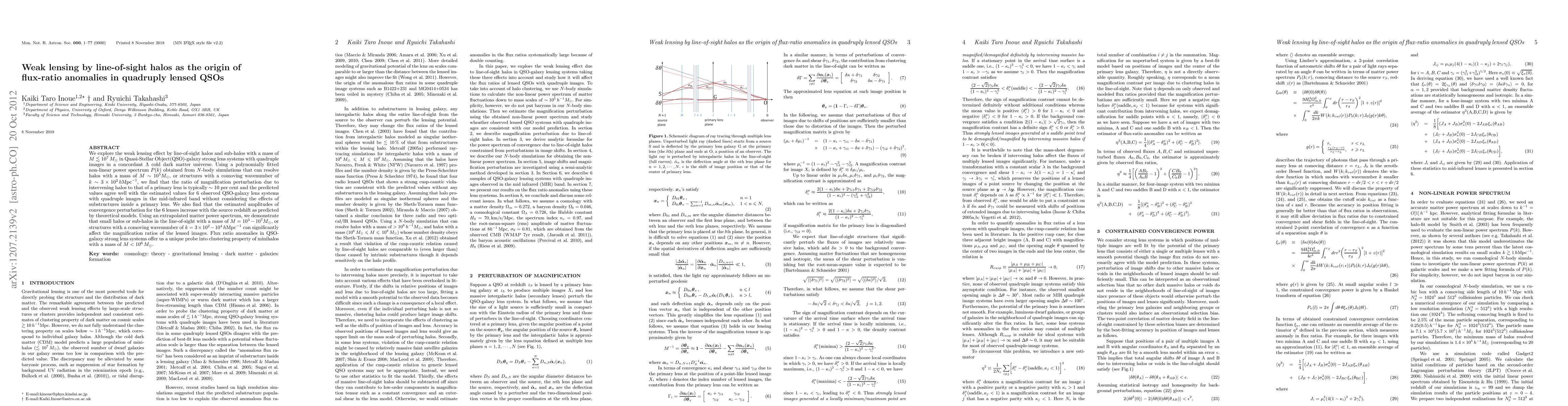 This paper investigates the weak lensing effect caused by line-of-sight halos and sub-halos on flux-ratio anomalies in quadruply lensed QSOs, finding that small halos with masses up to 10^7 solar masses can perturb magnification ratios by ~10%. The results align with observations of six QSO-galaxy lens systems, suggesting these anomalies provide insight into the clustering of mini-halos.