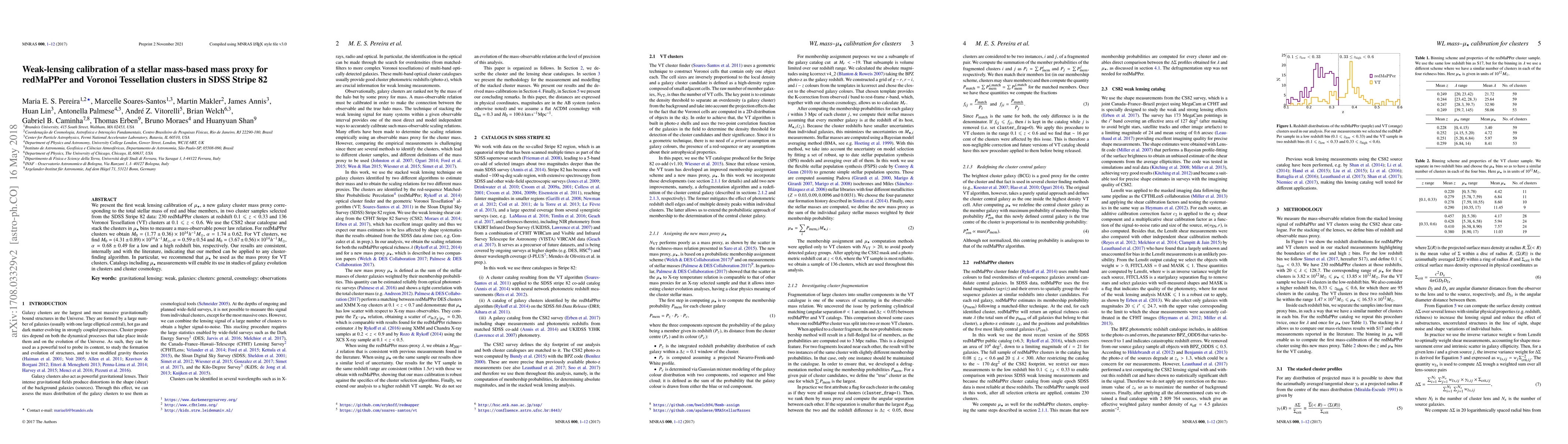 This paper presents the first weak lensing calibration of $\mu_{\star}$, a stellar mass-based mass proxy for galaxy clusters, using redMaPPer and Voronoi Tessellation clusters in SDSS Stripe 82. The study finds consistent mass-observable relations for both cluster types, recommending $\mu_{\star}$ for Voronoi Tessellation clusters in future studies.